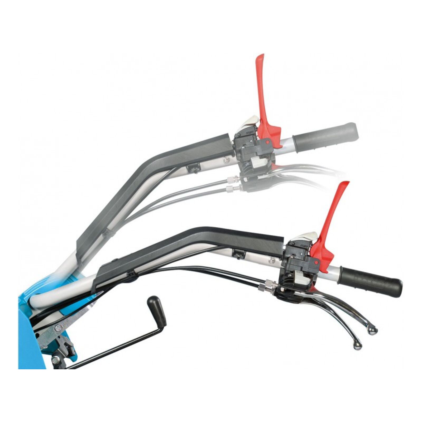 Műszaki adatok Motor: CH395 OHV, 227 ccm/9.5 LE Olajfürdős sebességváltó Függőlegesen állítható, anti vibrációs irányítókarok