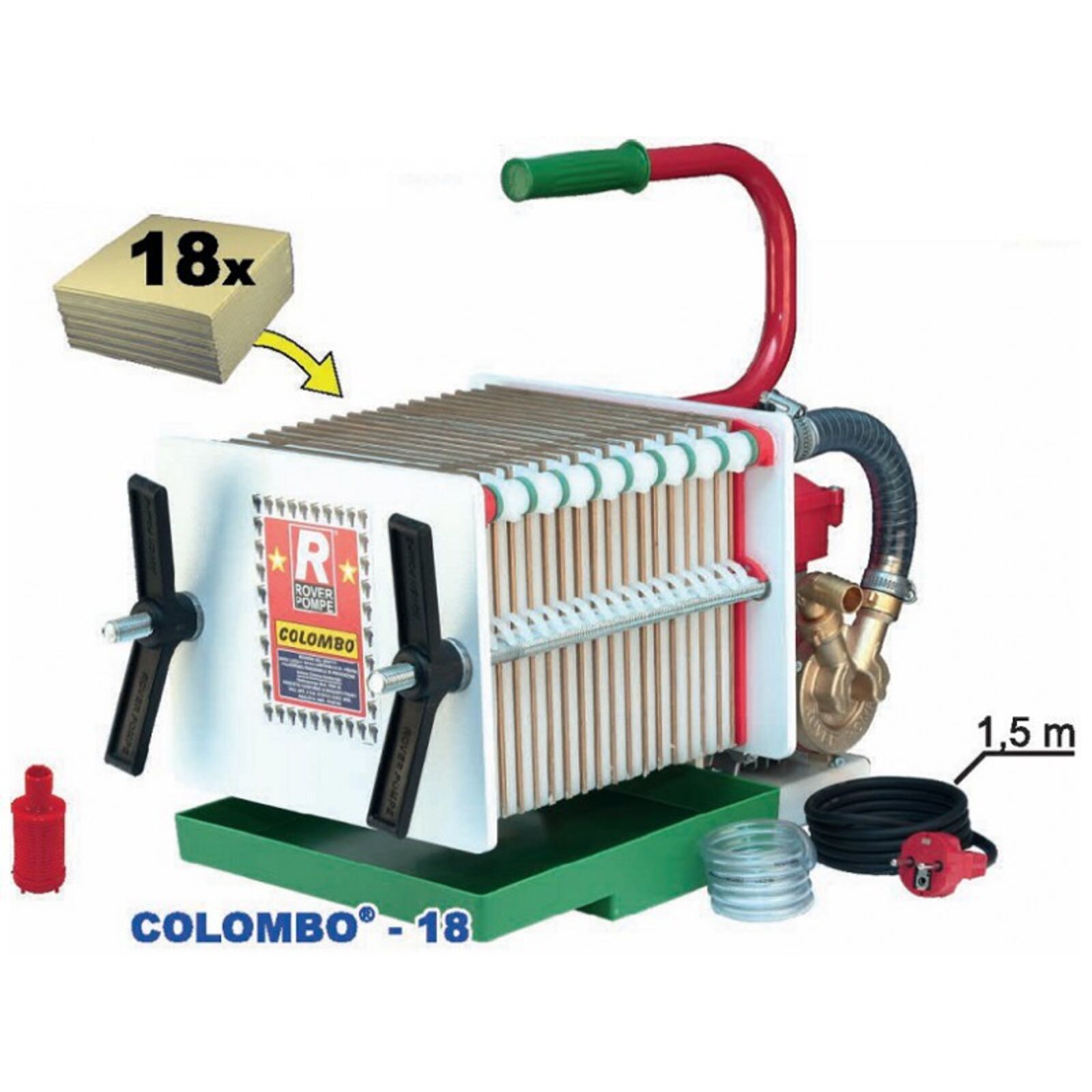 ROVER Colombo-18 lapszűrő Teljesítmény: 500-600 liter/óra BE-M20 szivattyúval szerelve Festett váz 18 db 20x20x szűrőlap (2x18 db-os csomaggal, 1 durva és 1 közepes szállítva)