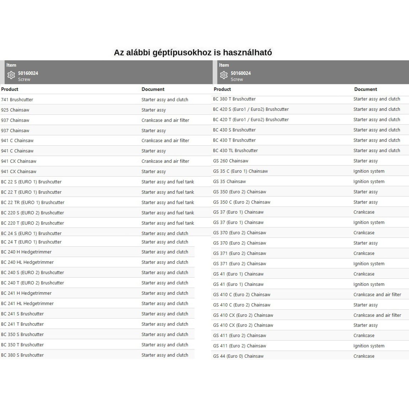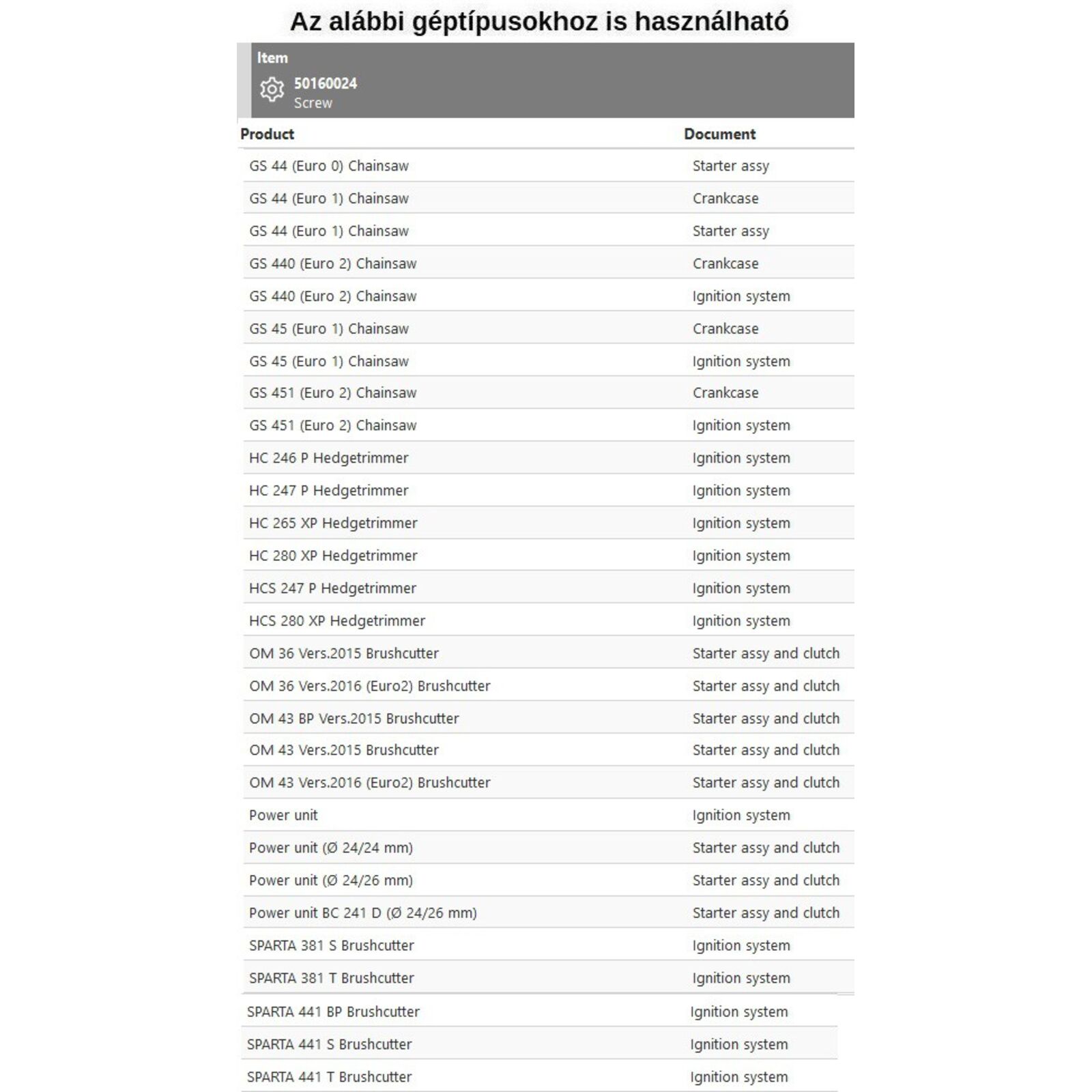 Csavar indító szerkezetek összeszereléséhez - rengeteg típus