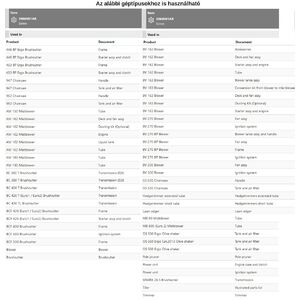 Tipusok: Fűrészek, Boz ótvágók, Permetezők, Lombfúvó, Multi Mate