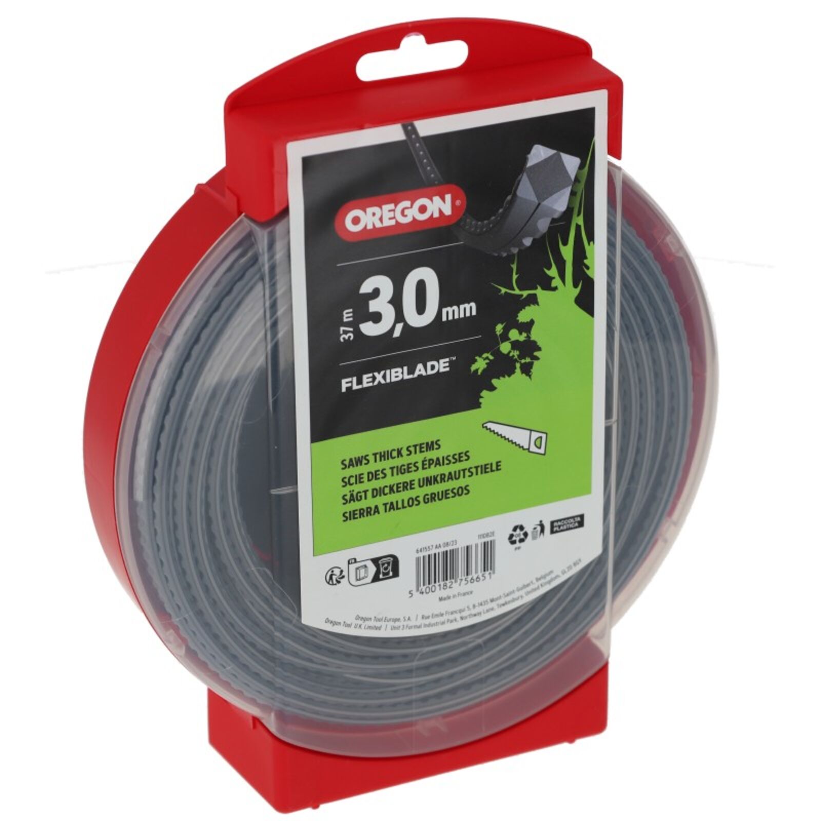 Oregon gyártmányú Flexiblade típusú damil, 37 méteres, 3.0 mm átmérőjű, szögletes, fogazott profilú.