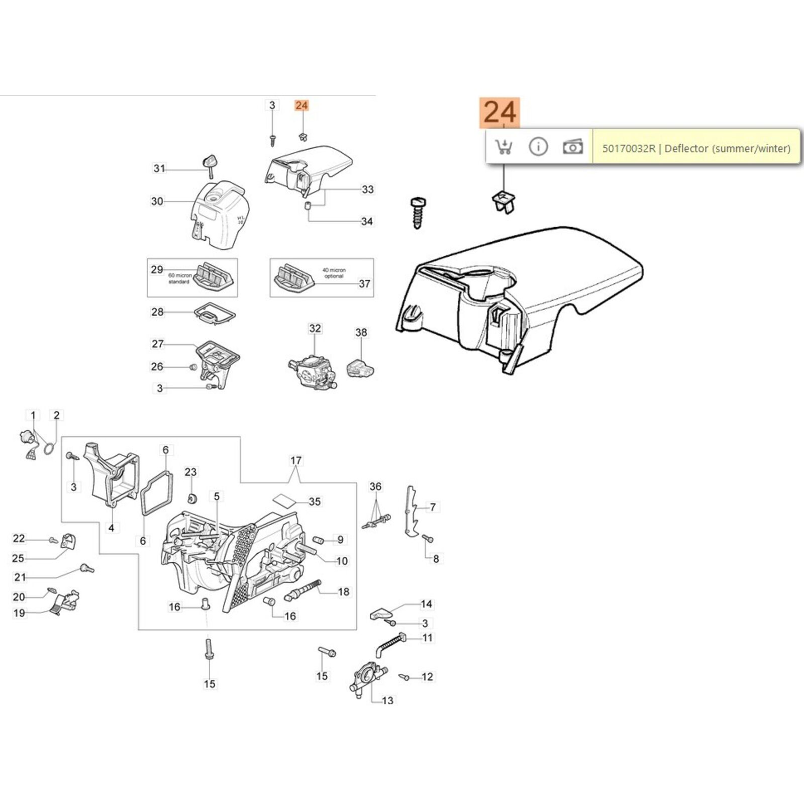 Deflektor (téli-nyári üzemmód választó) jégcsapda 937,941C-CX,GS370,371,410,411,GSH510,560