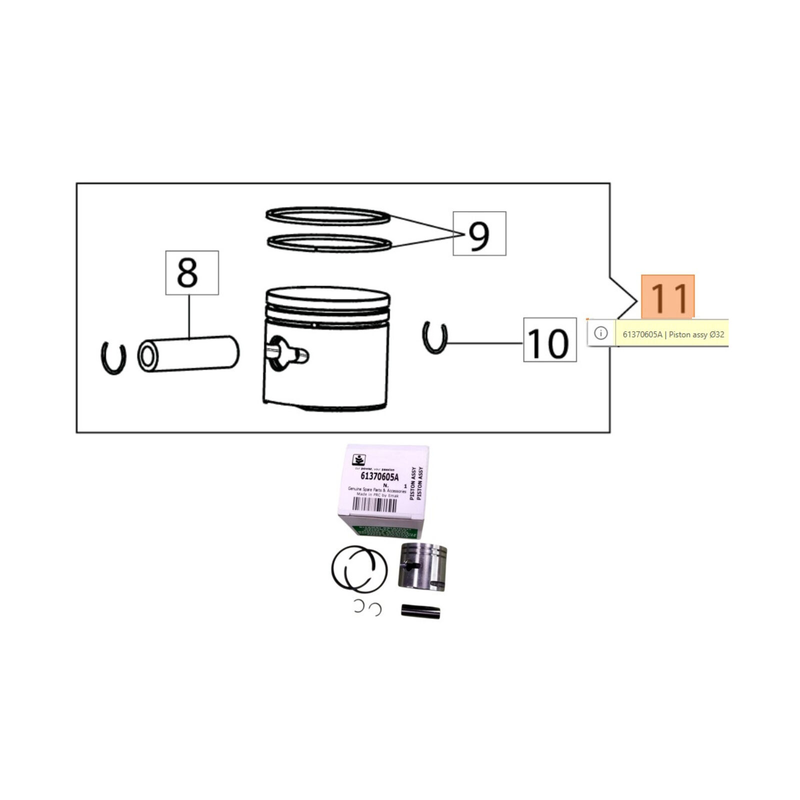 Dugattyú komplett 32 mm - BC 241, HC 246 P, HC 247 P
