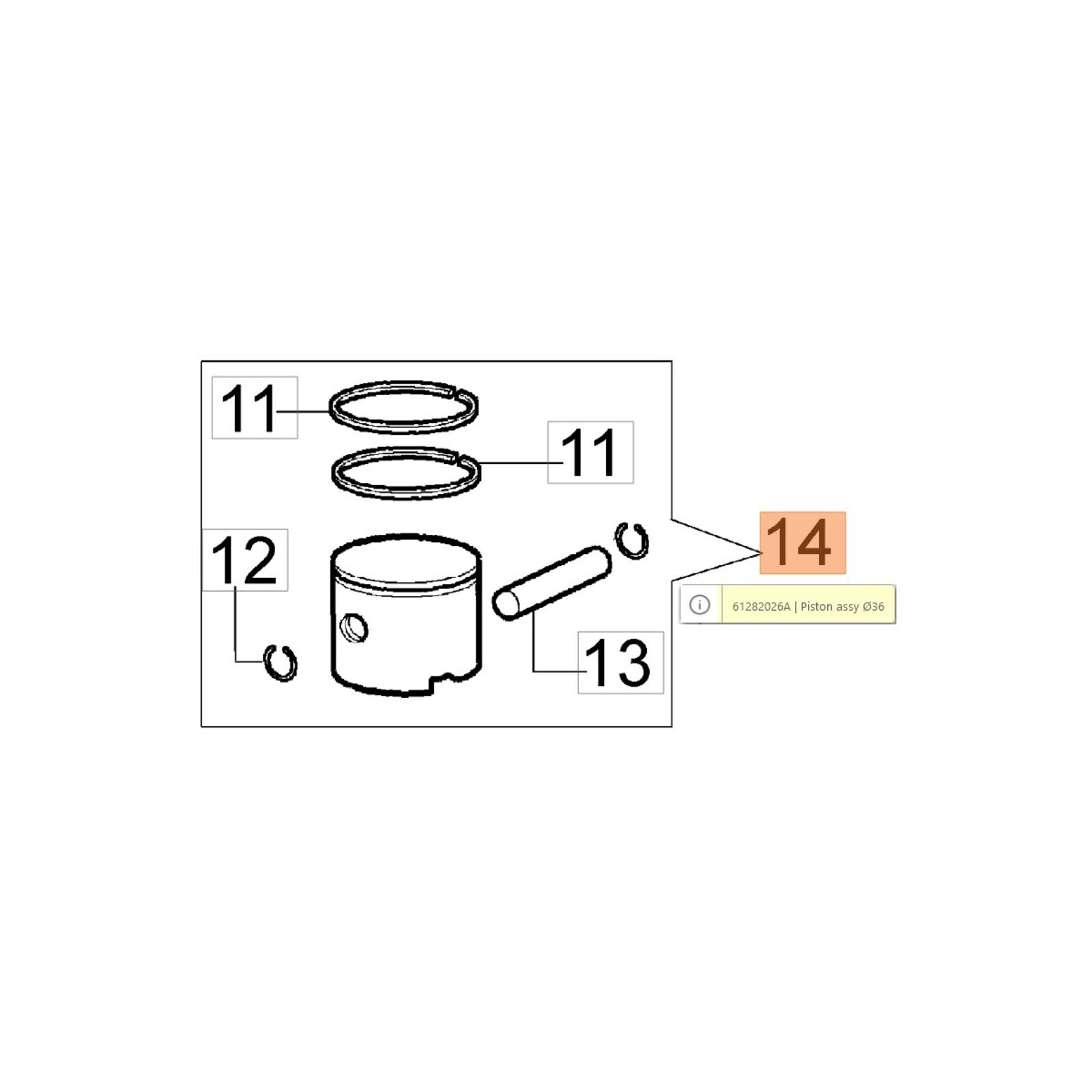 Dugattyú komplett 36 mm - BV300,Multi Mate,730,WP300,BC320 - 56552011,61050010 - AKCIÓ