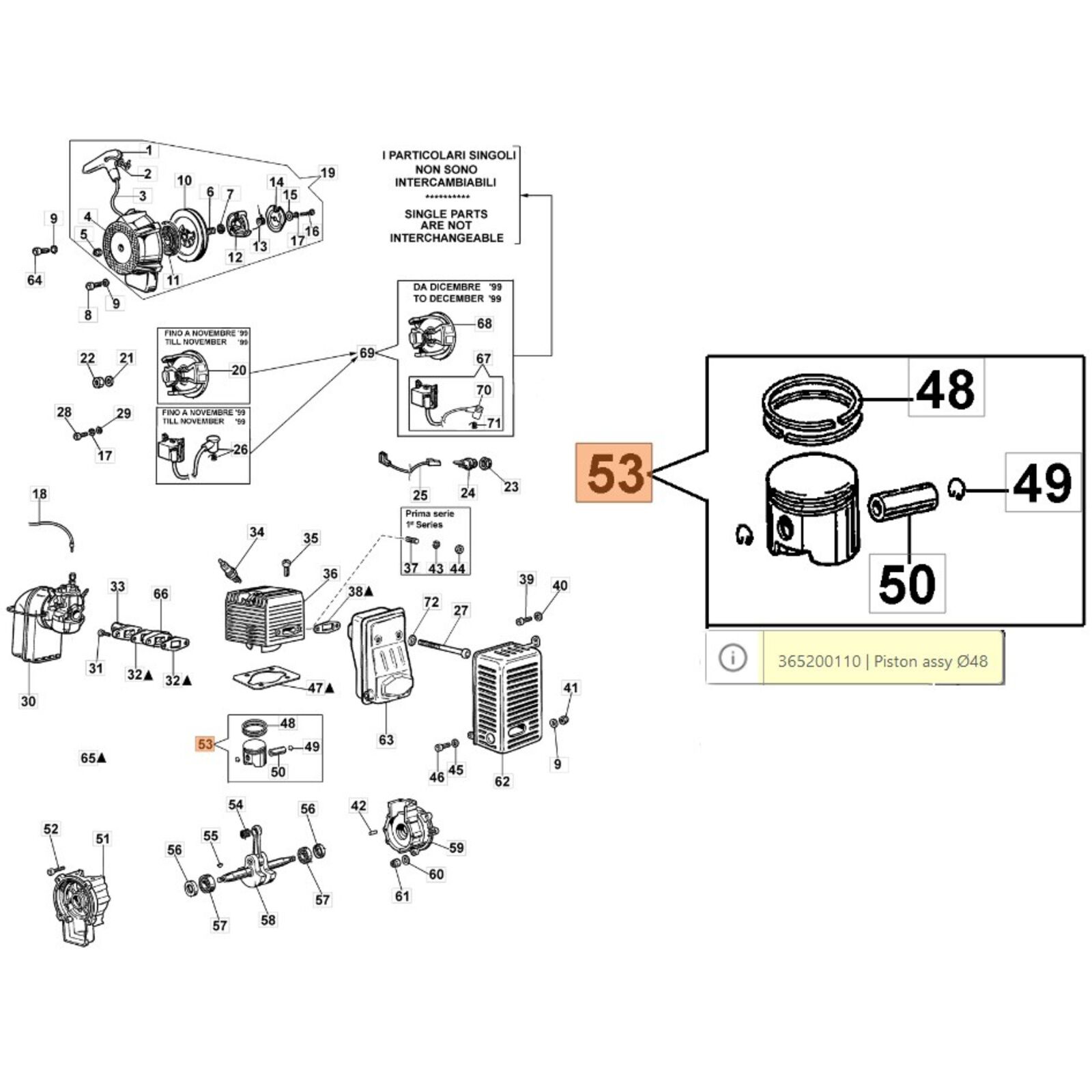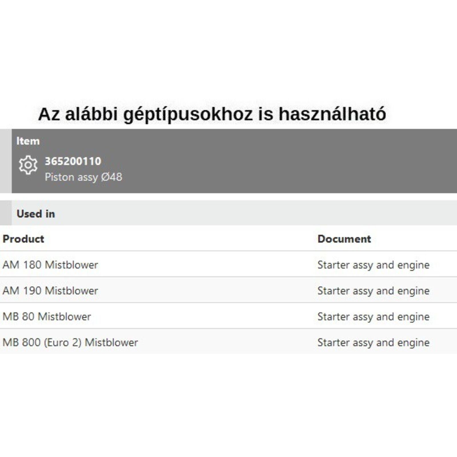 Dugattyú komplett 48 mm - AM 180, AM 190, MB 80, MB 800