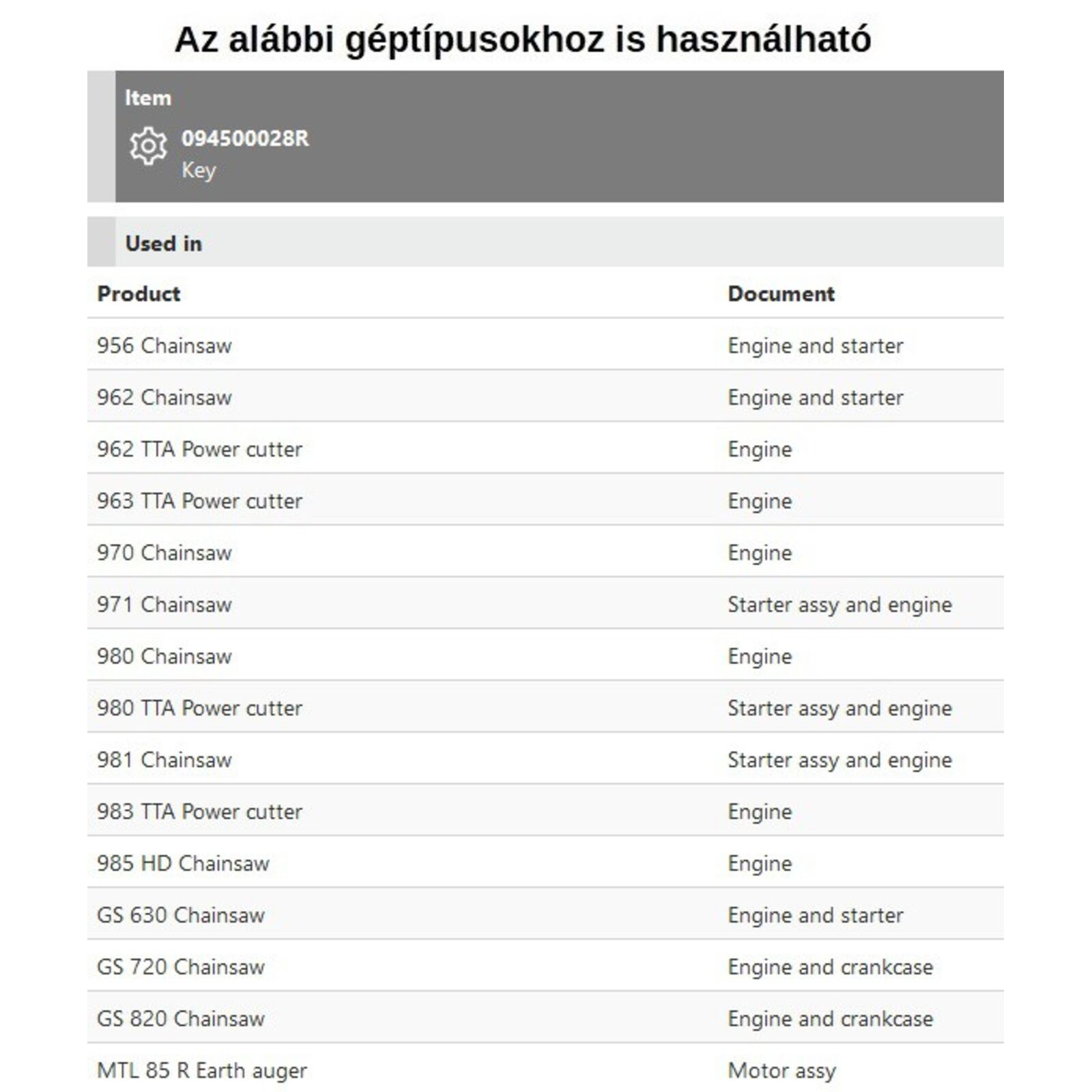 Típusok: 956, 962, 970, 971, 980, 981, 985 HD, GS 630, GS 720, GS 820, MTL 85