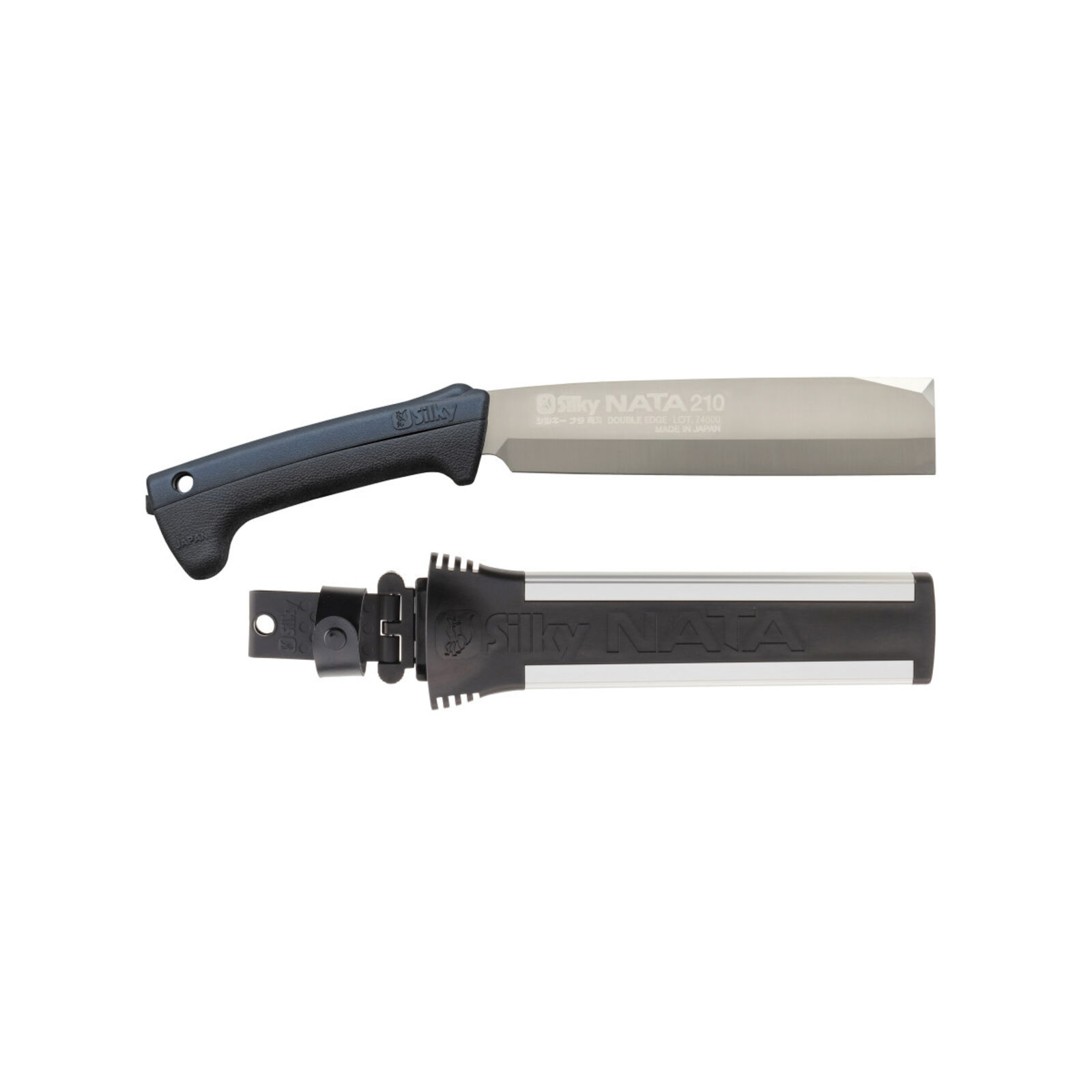 A dupla vágóéllel rendelkező NATA 210 kisméretű faágak levágásához, fakéreg eltávolításához, sövényírtásra ajánlott és kimondottan alkalmas fa hasításra. Az egy anyagból készült vágópenge speciális ötvözetű acélból készül és végigfut a szerszámon a markolat alatt is, egy kis szöget bezárva a tökéletes csapásért. A kényelmes GENKI markolat két gumi részből áll, amelyet csavarok nélkül lehet az acél vágóegységhez rögzíteni, nagyon jó tapadást biztosít és maximálisan elnyeli a vibrációt. Penge hossza: 210 mm