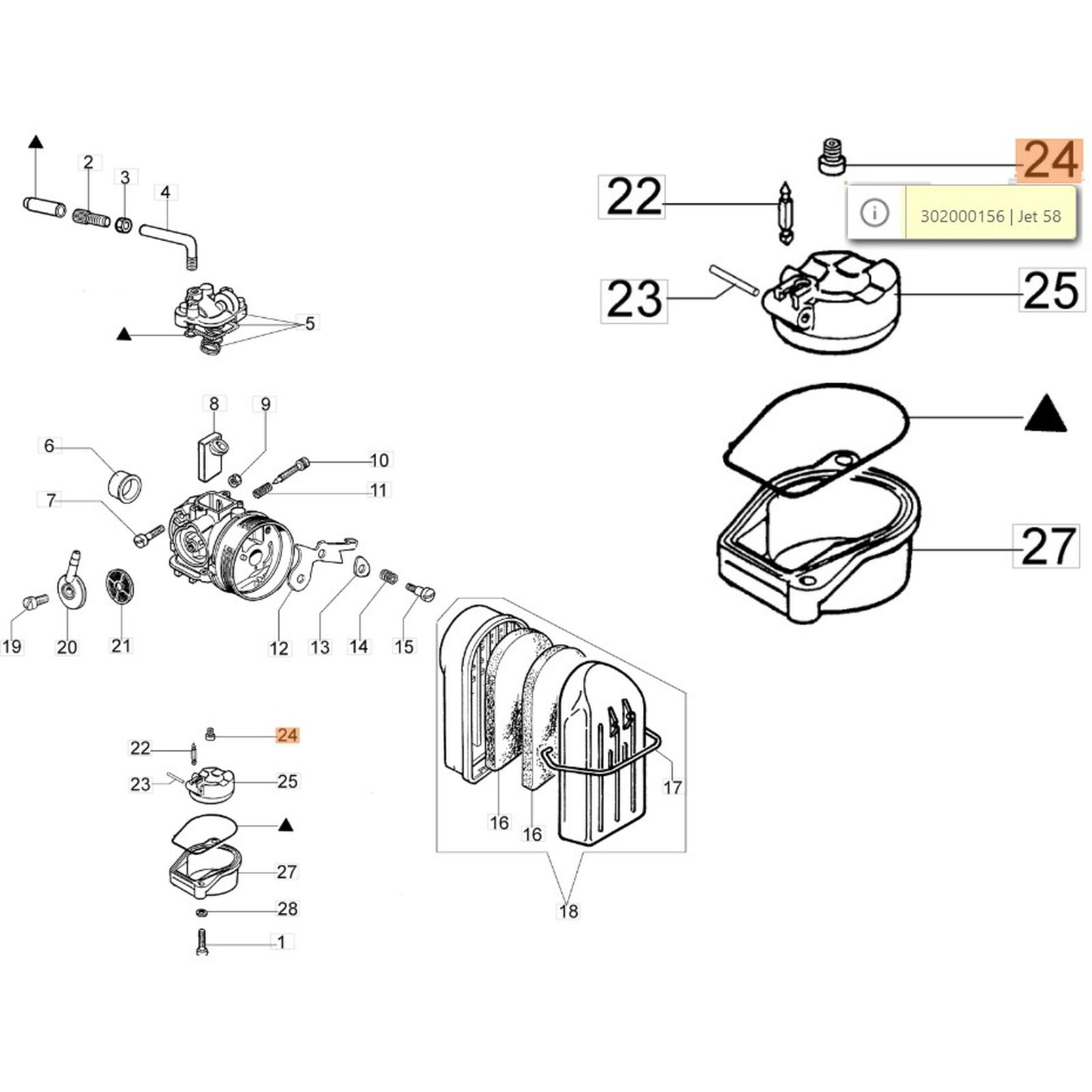 Főfúvóka AM 190, C 19/20, MB 80, MB 800, SA 18, - 58-as -