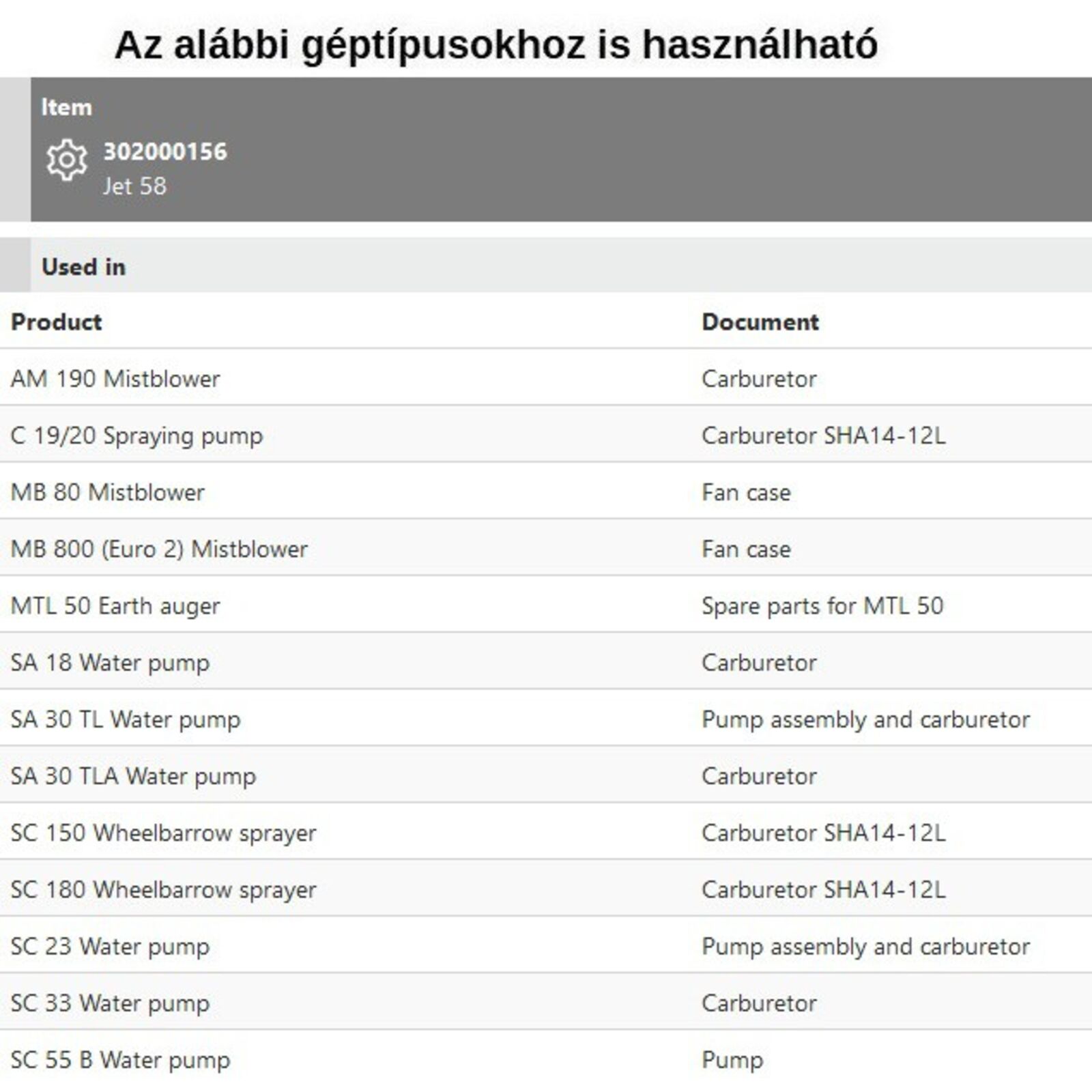Tipusok: AM 190, C19/20, MB 80-800, MTL 50, SA 18-30, SC 150-180, SC 23-33-55