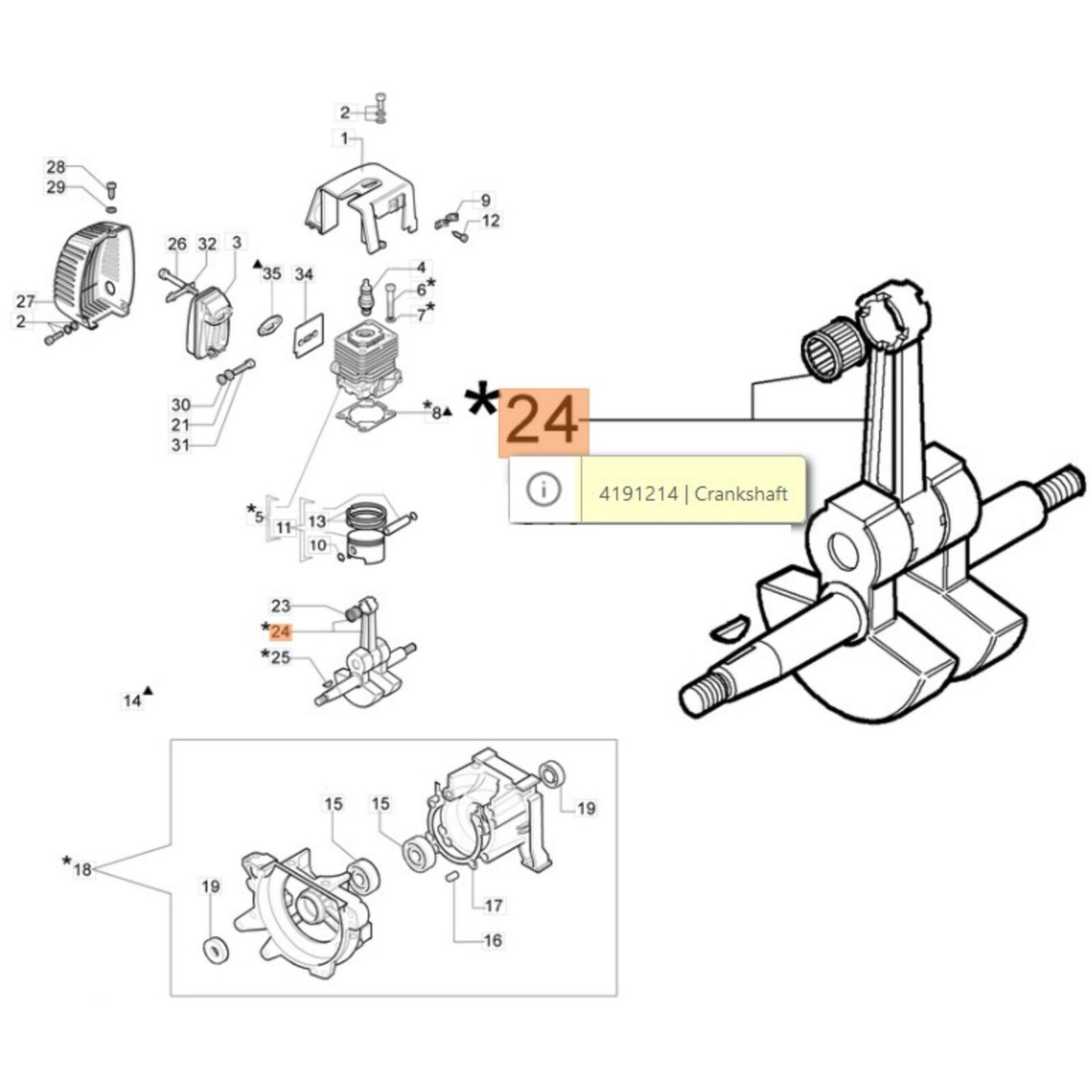Főtengely. OLEO MAC 750,755 bozótvágókhoz.