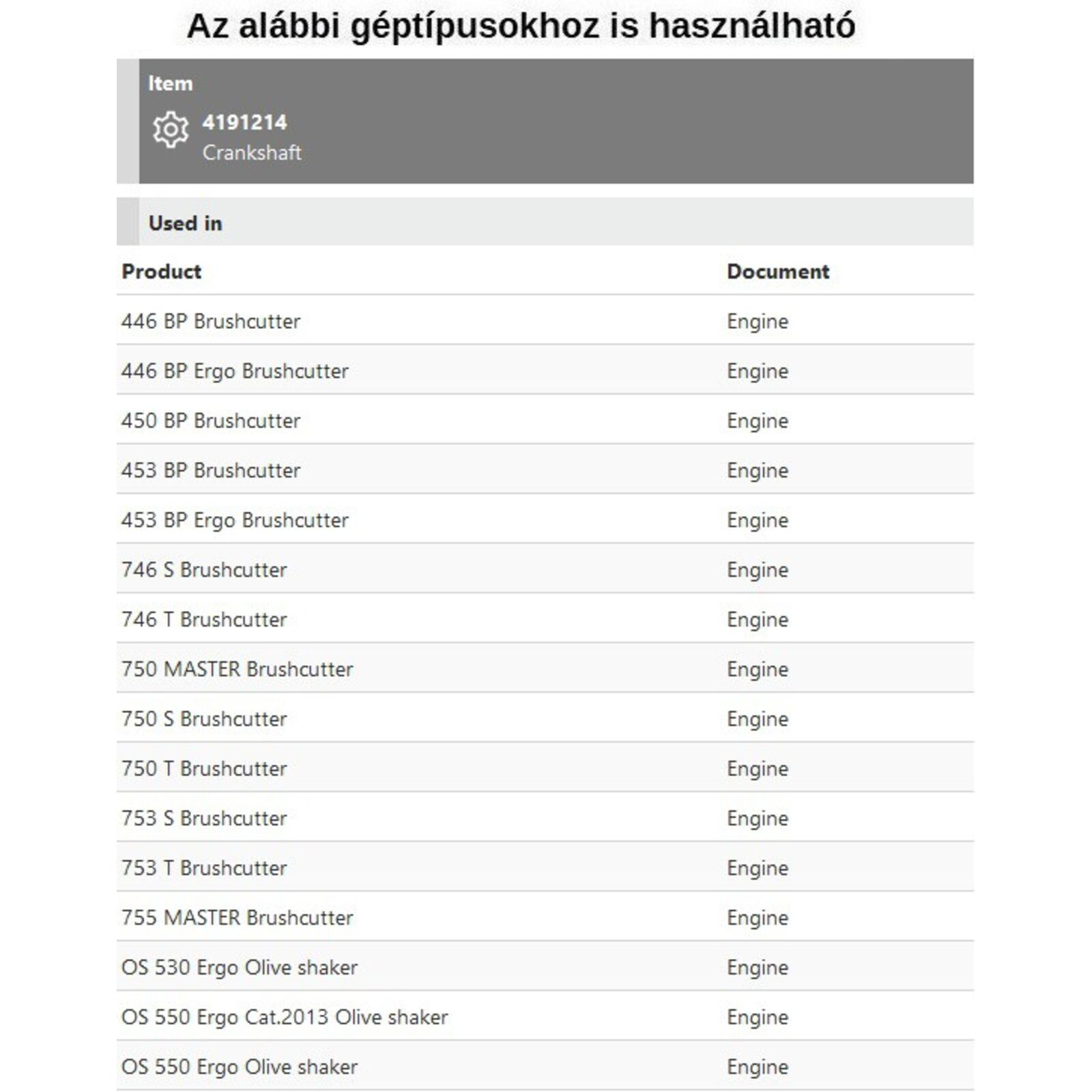 Főtengely 746,750,753,755 - RENDELÉSRE