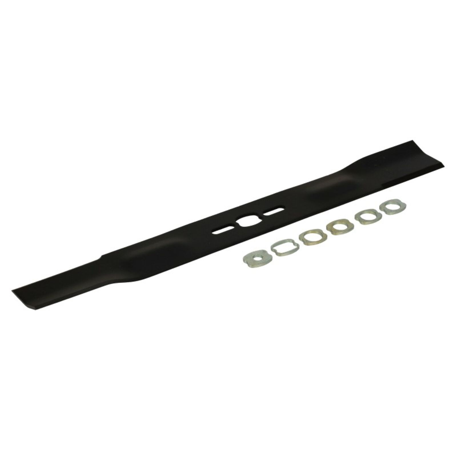 Univerzális, egyenes fűnyírókés, 5 darab különböző méretű szűkítő betétgyűrűvel. Betétgyűrűk mérete: 9,5mm/ 12,7mm/ 14,3mm/ 15,9mm/ 19,05mm Hossz:530mm Középső lyuk átmérő:25,4 Szélső lyukak átmérője:10x28mm Szélesség:50mm Vastagság:4mm Típusok: Több gyártmány: