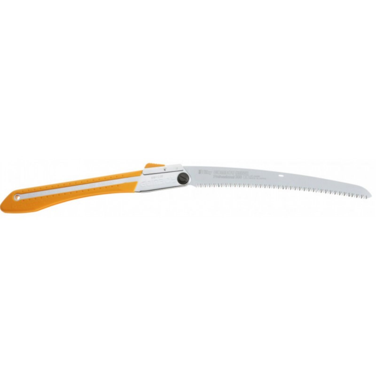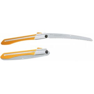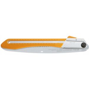 Ívelt vágópengéjű fűrész, ritka fogazata miatt kiválóan alkalmas friss fa vágására. Extra agresszív teljesítményét az ívelt pengének köszönheti. Nagyon jól használható váll feletti és könyök alatti vágásokhoz. Sárga színű, gumiból készült markolata elnyeli a vibrációt és kényelmes fogást biztosít még esős időben is. Penge hossza: 300 mm Fogak száma / 30 mm: 8 Szélesség: 1,4 mm