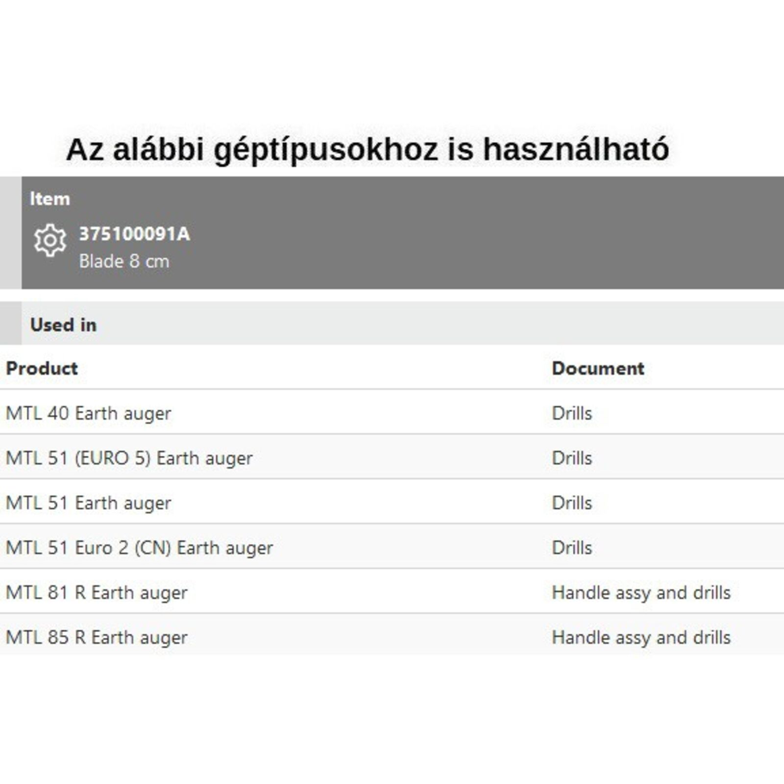 Fúrószár kés MTL 40,51,81,85 - 8cm
