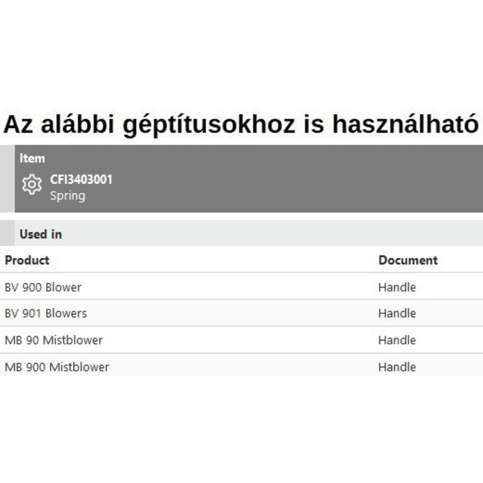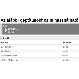 Gázkar rugó BV 900, BV 901, MB 90, MB 900,