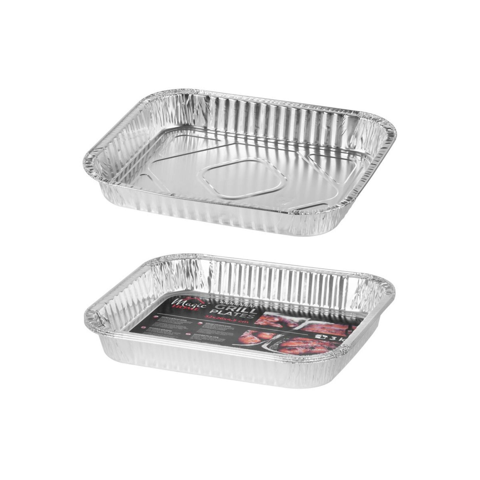 Grilltál magas MagicHome 32 x 26 x 4,5 cm, 3 db, szögletes, ALU