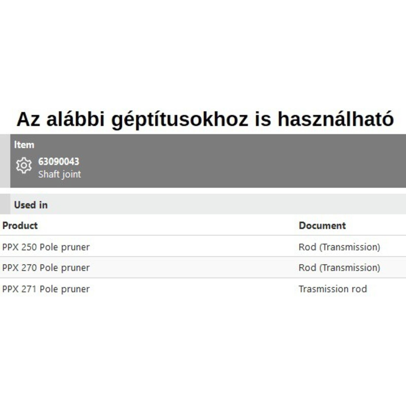 Hajtás adapter tengely PPX 250,PPX 270,PPX 271 - RENDELÉSRE
