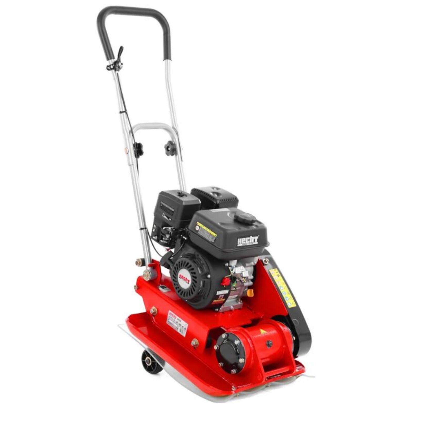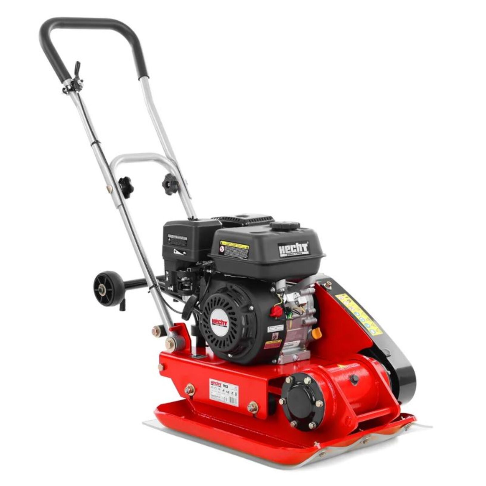 Hecht 1113 Lapvibrátor összecsukható kerekekkel és tartozék gumilappal. 4 ütemű benzinmotoros teljesítménye 5,5 LE.