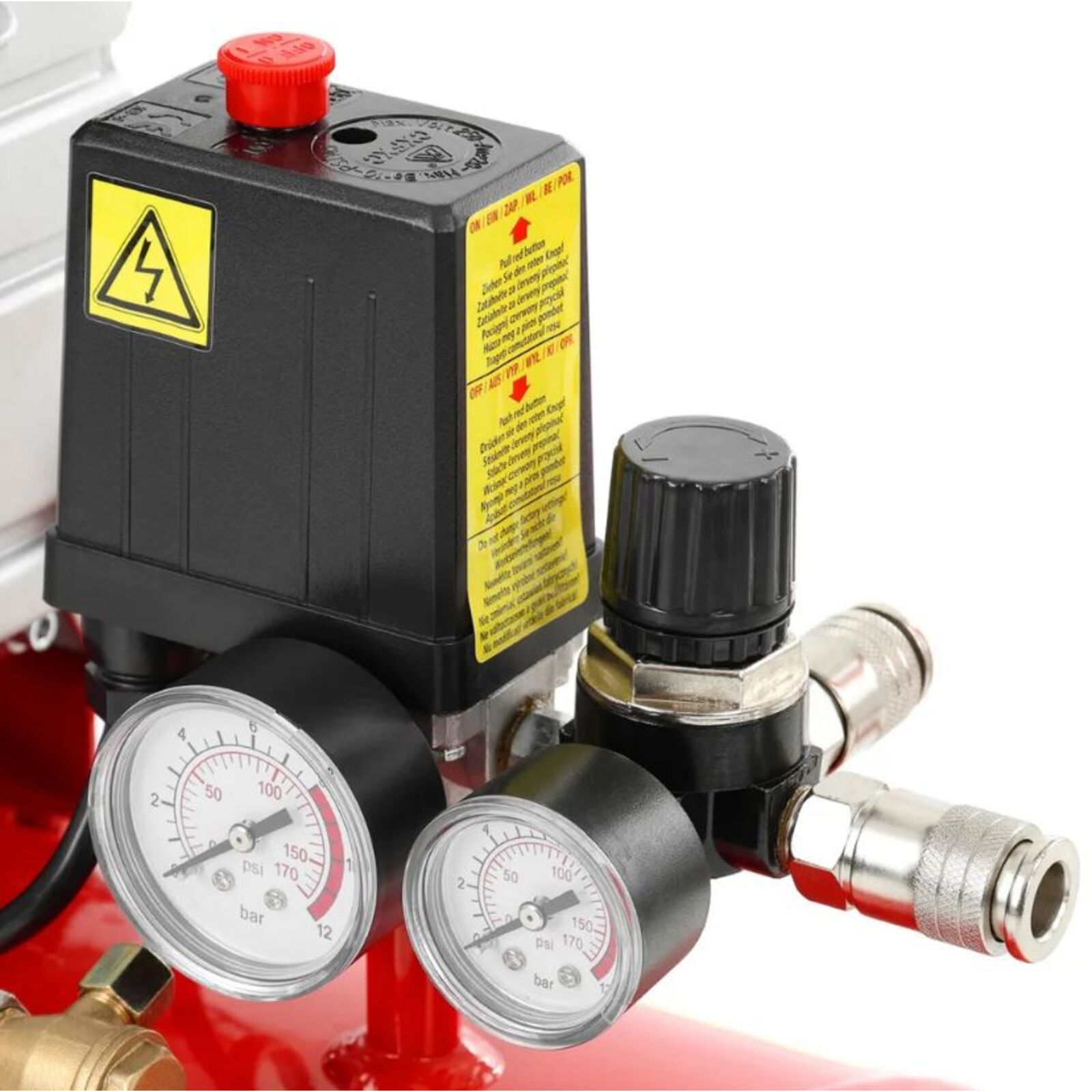 Olajos kompresszor ideális garázsban vagy műhelyben. 50 literes légtartállyal és két manométerrel van felszerelve. Az automatikus indítást a nyomáskapcsoló biztosítja, a légtartály beállított értékre nyomása után a kompresszor automatikusan kikapcsol és csak a nyomás minimális szint alá süllyedése után indul el. 230 V/50 Hz-es villanymotor hajtja, 1,5 kW teljesítménnyel. A maximális nyomás 8 bar. A kompresszor súlya 30 kg, a fogantyú és a kerekek a könnyű kezelhetőséget szolgálják. maximális szívóteljesítmény 186 l/perc. Az állapot és az olajszint ellenőrizhető a kompresszortesten található jelzőlámpával. A nyomótömlő és a légpisztoly nem része a kompresszornak, opcionális tartozékként megvásárolhatók.