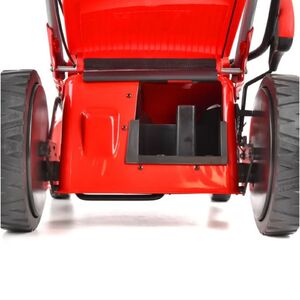 A fűnyíró beindítása történhet az elektromos indítóval, vagy a klasszikus berántóval is. Az elektromos indítás a fogantyún található indítógomb lenyomásával történik. Az indítást 12 V-os akkumulátor segíti, ami a fogantyú paneljében található. Így mindig jól hozzá lehet férni, és a fűnyíró tartozéka az akkumulátor töltő is, amit közvetlenül a fogantyún található, így az akkumulátort úgy lehet tölteni, hogy nem szükséges kivenni a fűnyíróból. A fűnyírót természetesen klasszikus berántással is be lehet indítani.