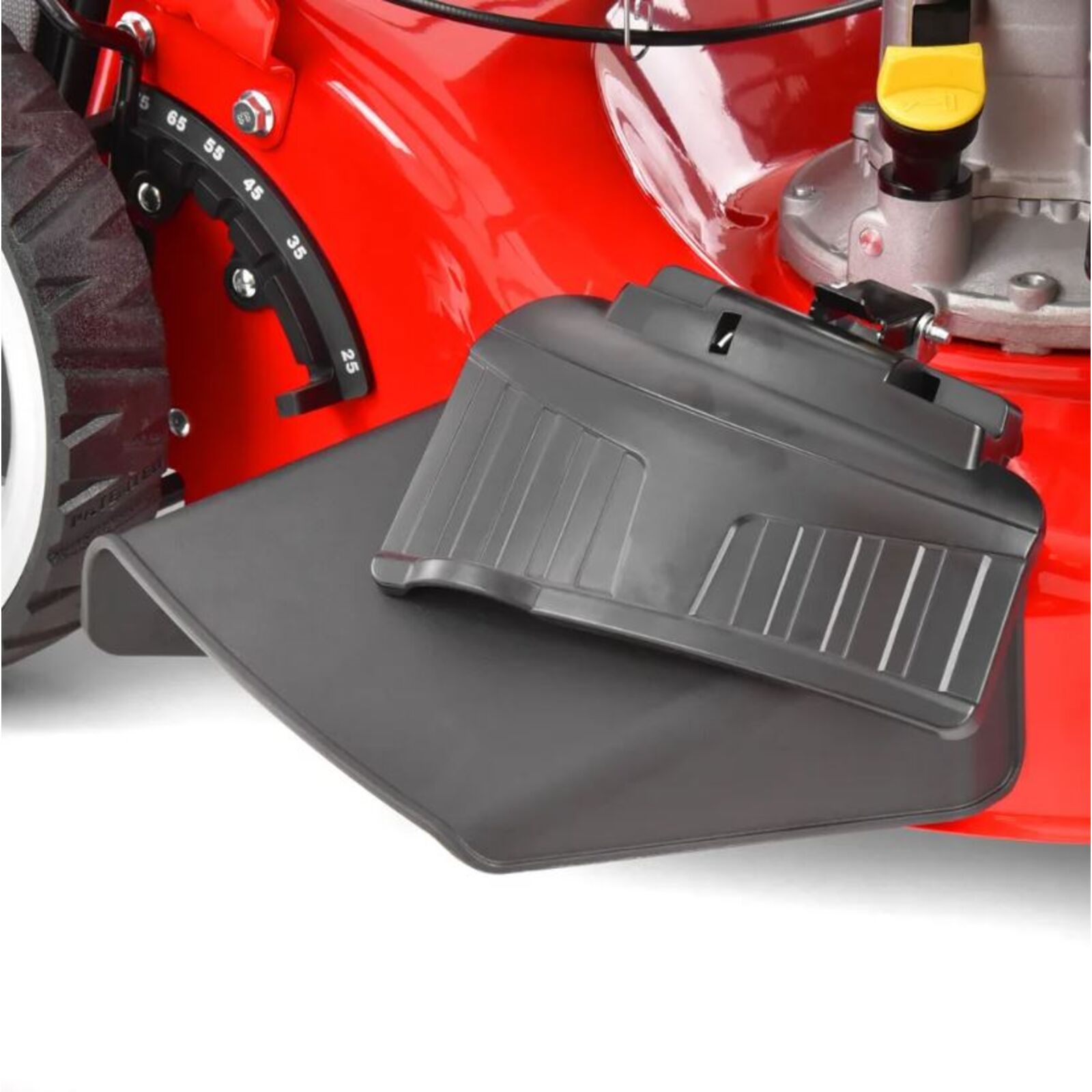 További alternatív fűnyírási mód az un. mulcsozás. A munlcsozókészlet, amit tartozékként adunk, lezárja a fűkidobót, és a speciálisan kialakított késeknek köszönhetően a füvet nagyon apróra vágja össze. Ez az apróra vágott fű visszahullik a gyökerekhez, így természetes trágyaként táplálja a talajt. Érdekes, hogy ez a szétszórt fű hagyja lélegezni a pázsitot, sőt, úgy akadályozza meg a nedvesség elpárolgását, hogy segíti a fű egészséges növekedését.