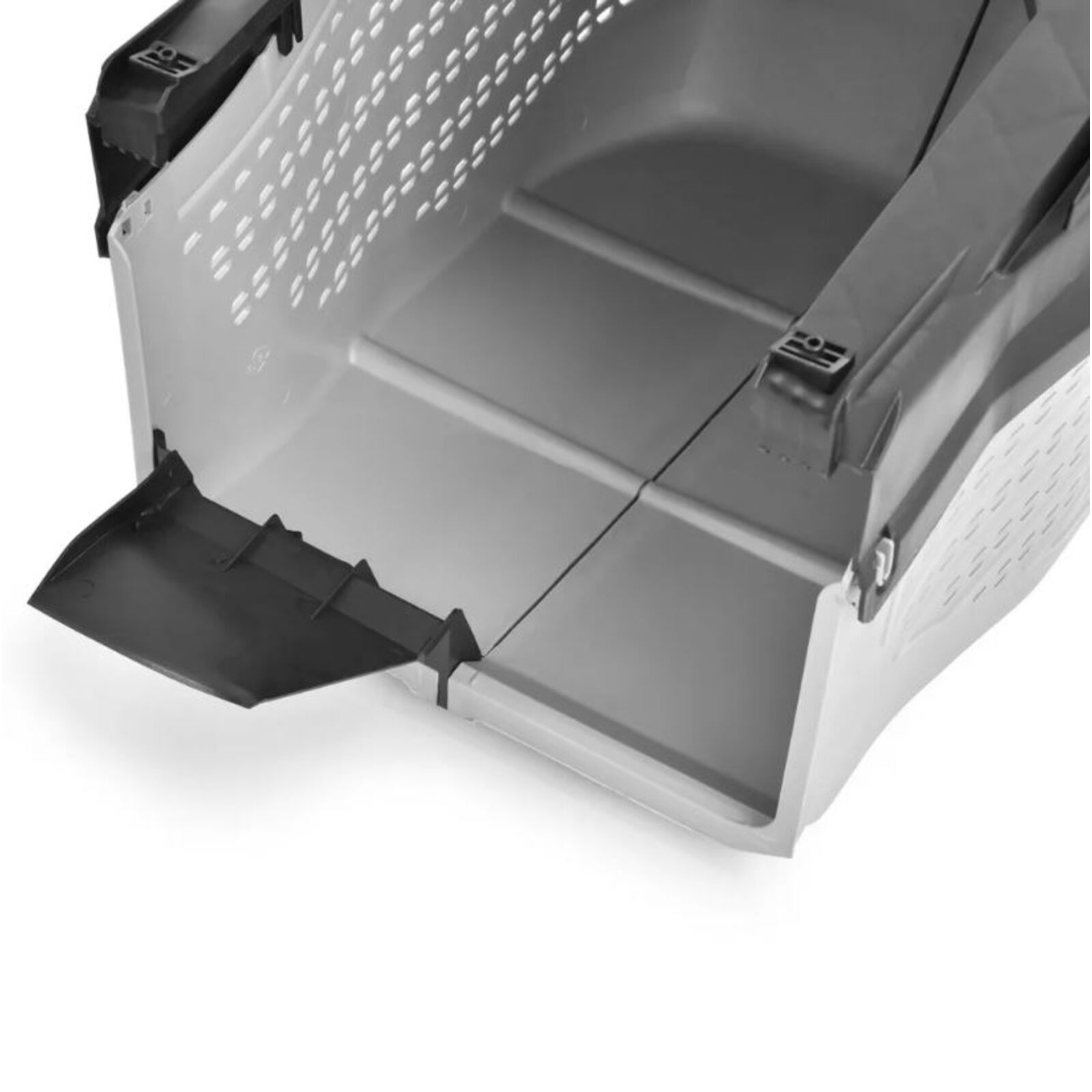 A füvet egy 60 L -es tartós műanyagból készült kosárba dobják.