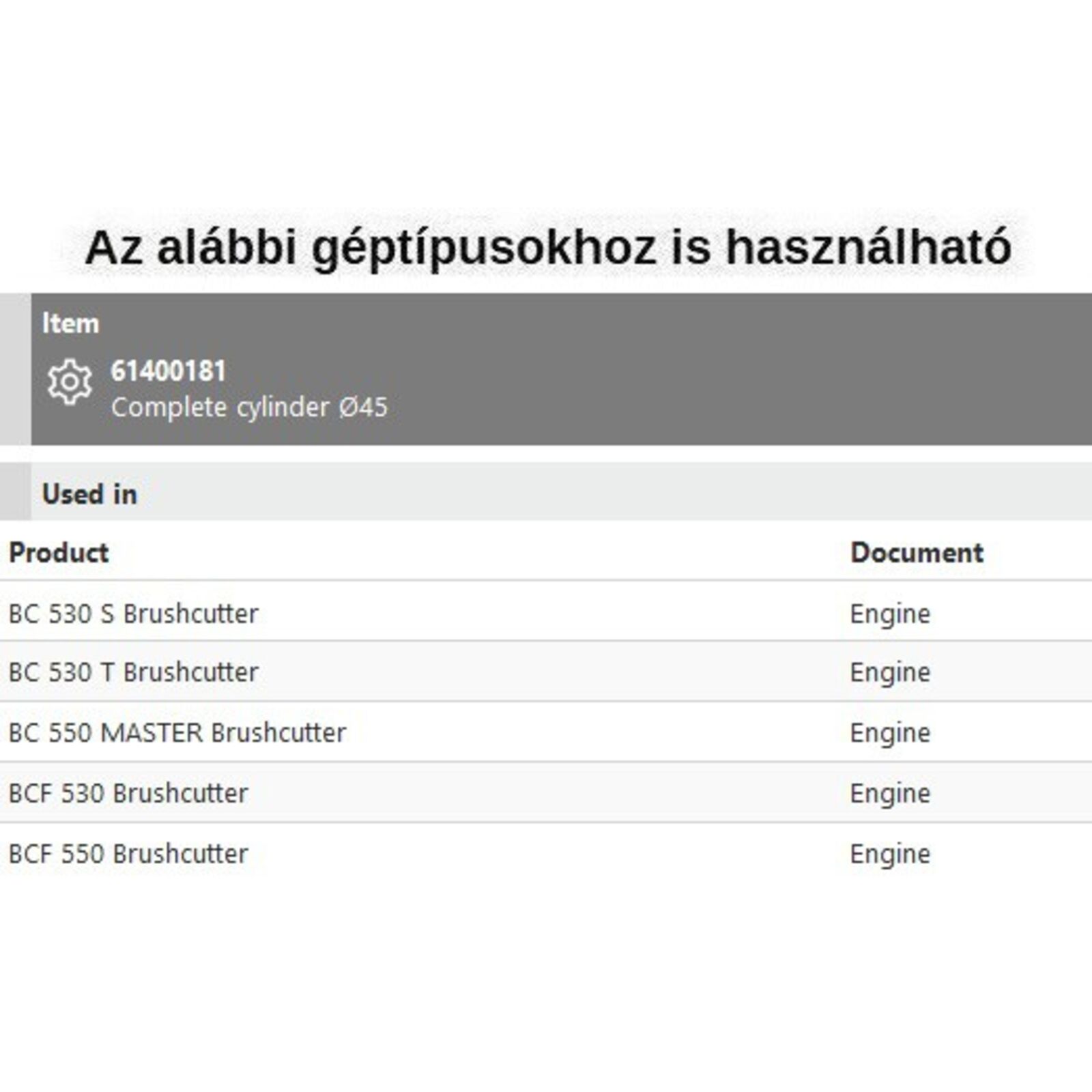 Henger komplett 45 mm, BC 530, BC 550 - AKCIÓ