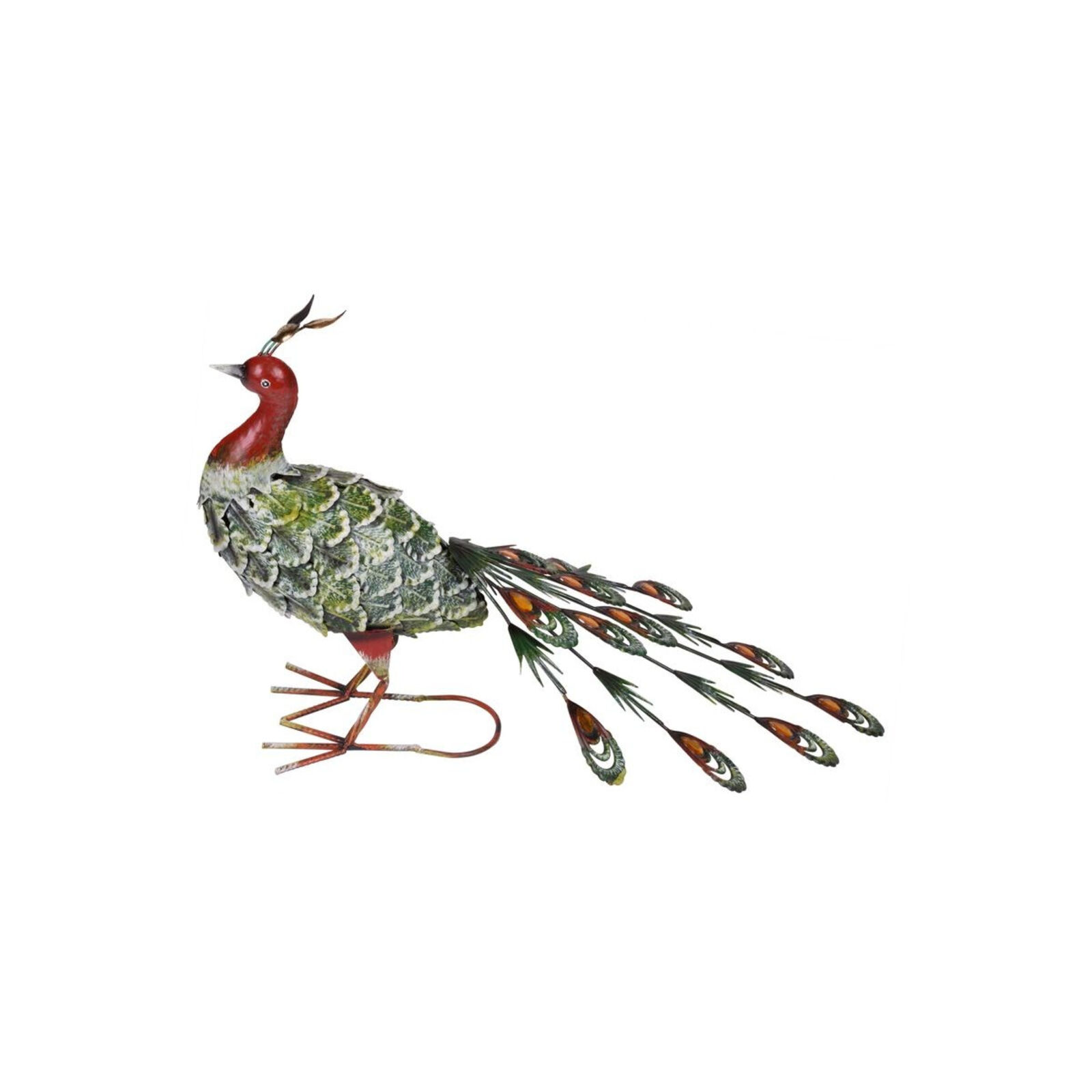 Kerti dekoráció Páva, fémlemez, 62x23x43 cm Mecco (piroszöld)