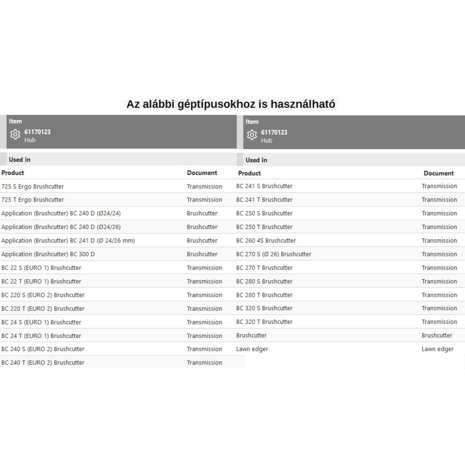 Késfelfogó (központosító) 725,BC 22-220-24-240-241-250-280-320Efco 8250 MultiMate is