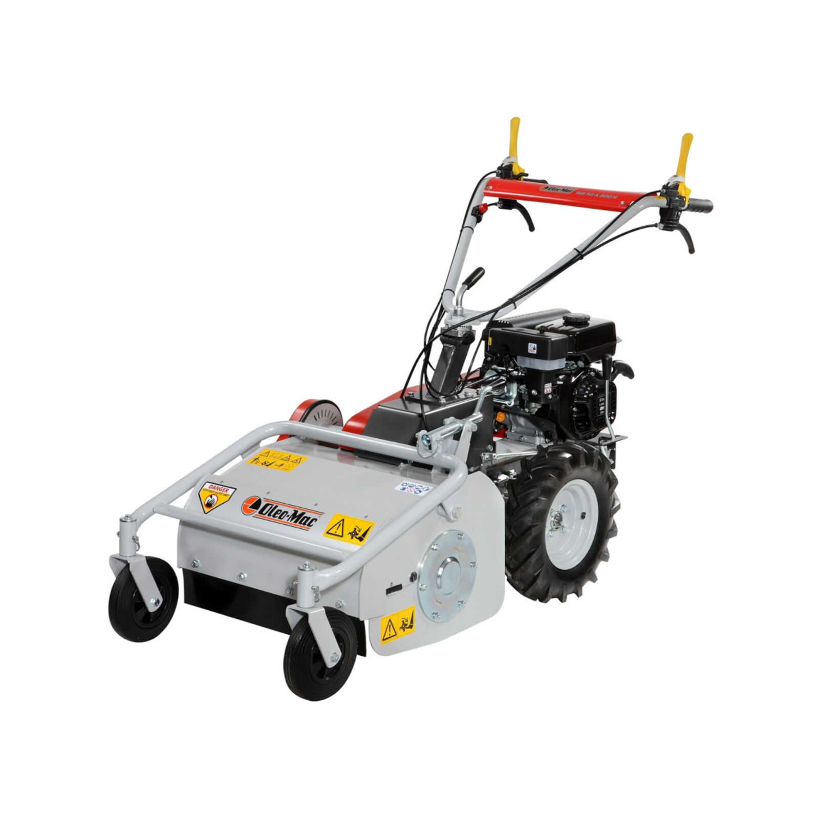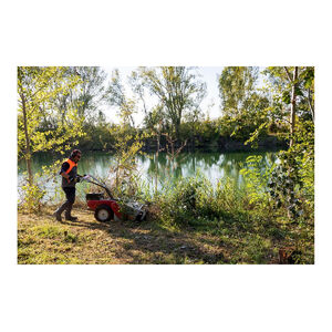 Kompakt és nagy teljesítményű modell, amit a zöldterületek magánfelhasználói számára terveztek. Fű, indák, alacsony vegetáció és gyökerek alkotják az ideális munkakörnyezetet a számára. A rotoregység kompakt mérete miatt jól kezelhető szűk helyeken történő használat esetén és szállítás közben. A nagyméretű gumikerekek semmilyen talajon nem jelentenek korlátot. Egy olyan széleskörűen használható gép, amely könnyen alkalmazkodik a különböző terepviszonyokhoz. Az erősített és védett csapágyakkal támogatott vágóegység rotor az egész berendezést tökéletesen kiegyensúlyozottá és ellenállóvá teszi a véletlen ütésekkel szemben. A kormányoszlop végén elhelyezett kényelmes markolat segítségével függőlegesen és vízszintesen állítható kormány. Jelentős méretű gumis kerekek (4,00-8”) garantálják a kiváló tapadást a talajhoz. A vágásmagasság beállítása végtelenített csavarral ellátott karral történik. Finoman állítható 20 és 80 mm között. Hengerűrtartalom 182 cm3 Motor márka/modell Emak K 800 H Vágás szélesség 50 cm - 26 kés Erőátvitel 3 előremeneti sebesség + hátramenet Vágásmagasság beállítása Központi (20 - 80 mm) Kormánybeállítás függőleges és vízszintes Kerekek 4.00x8” + 2 elfordítható rögzítőelemmel Sebesség 1.: 1,2 - 2.: 2,2 - 3.: 3,4 1.R: 1,4 km/h Méretek 1560x670x1185 mm Súly 135 kg