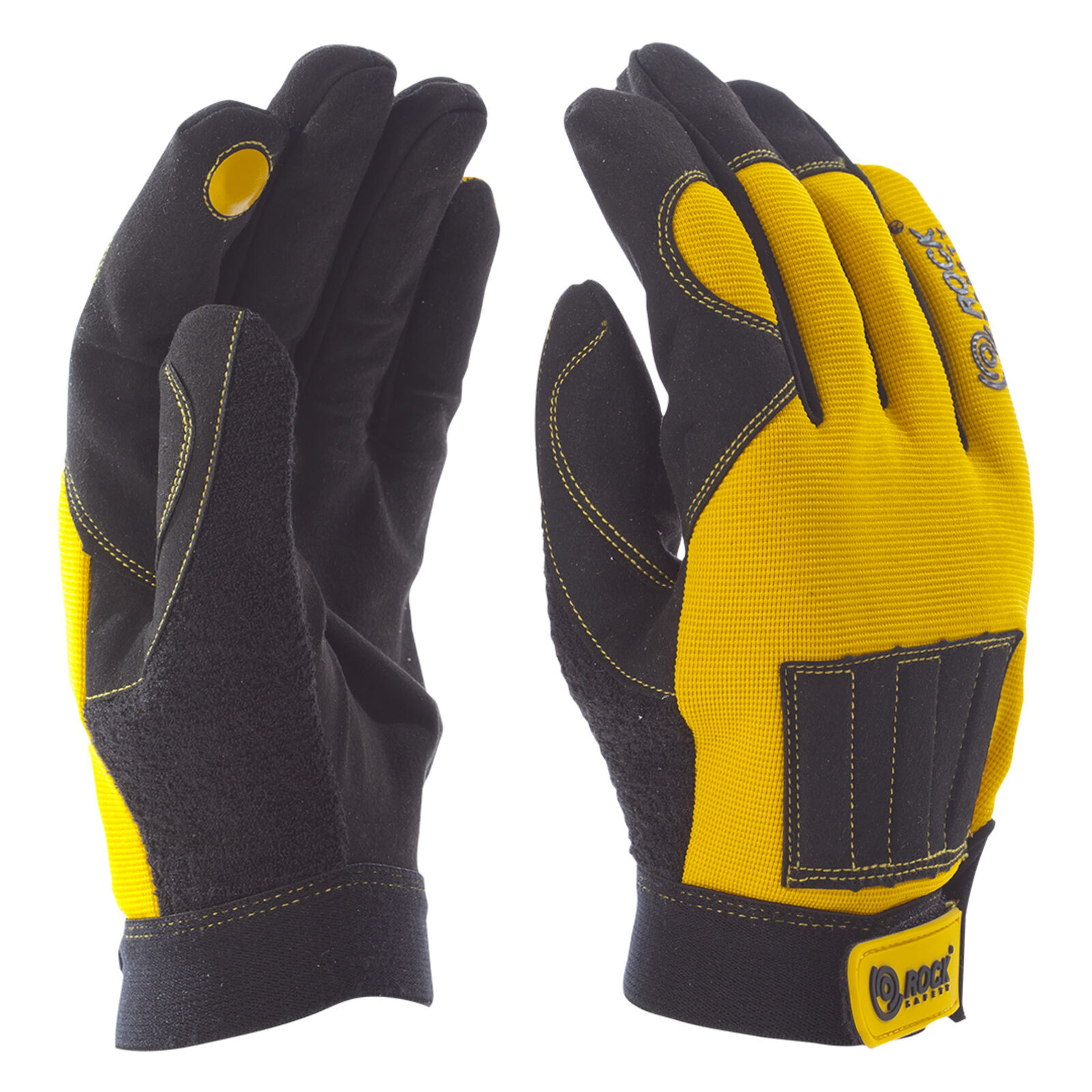Mechanikai kesztyű, citromsárga-fekete, mágnesbetét a mutatóujjon és a kézháton, XXL-es