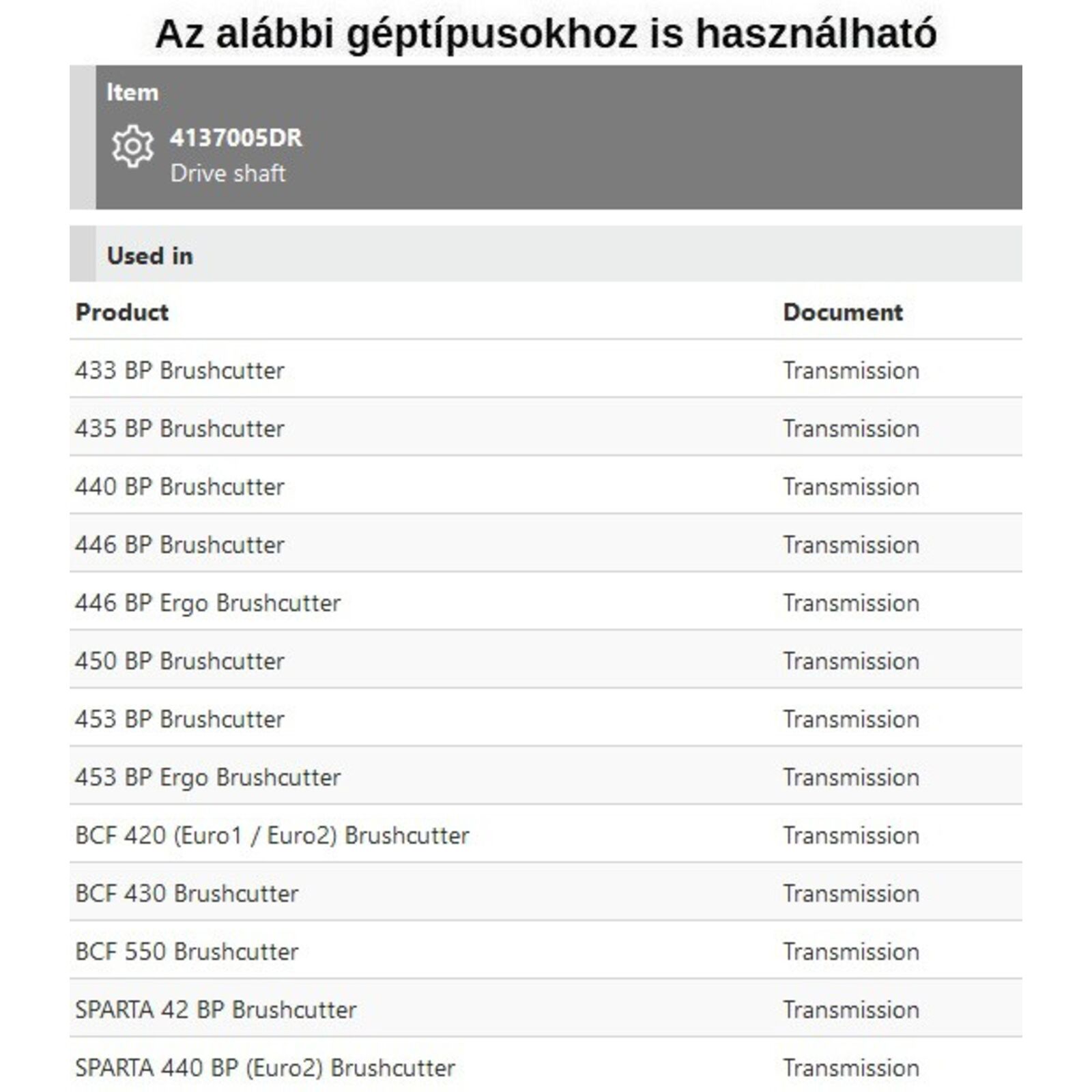 Meghajtó spirál 440,446,453,BCF 420,Sparta 42,440 BP