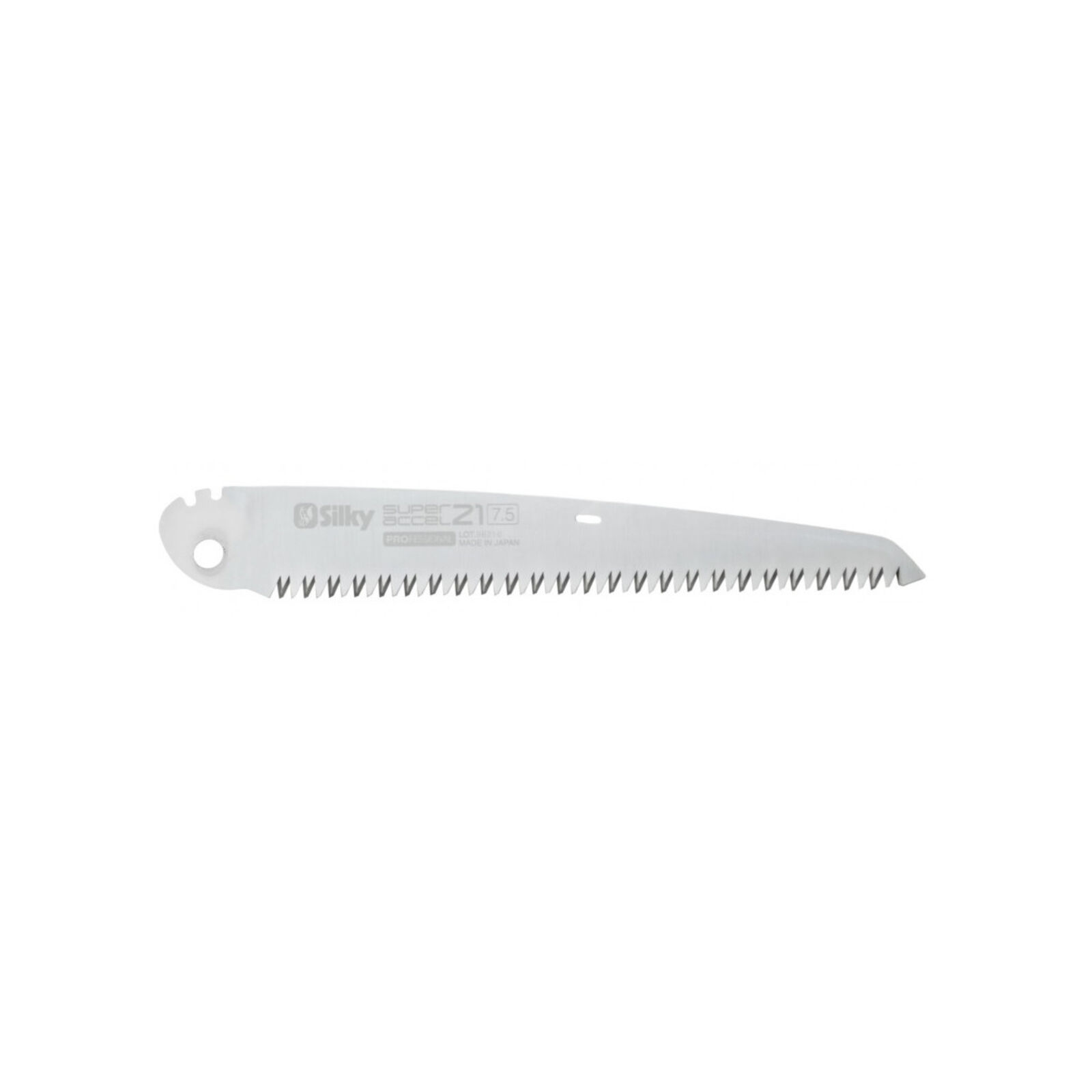Ritka fogazata miatt tökéletes választás friss ágakhoz. Indukciós edzés: a fogak végeit nagyon magas hőmérsékletre melegítik. A fog többi része rugalmas marad. Az indukciós edzés hatására a fogak háromszor hosszabb élettartamúak, mint az edzetlen vágófogak. Króm bevonat, extrém keménnyé teszi a penge felületét, csökkenti súrlódást, növeli az élettartamot. Megvédi a pengét a rozsdásodástól és a szennyeződések lerakódásától. Penge hossza: 210 mm Fogak száma / 30 mm: 7,5 Szélesség: 1,3 mm
