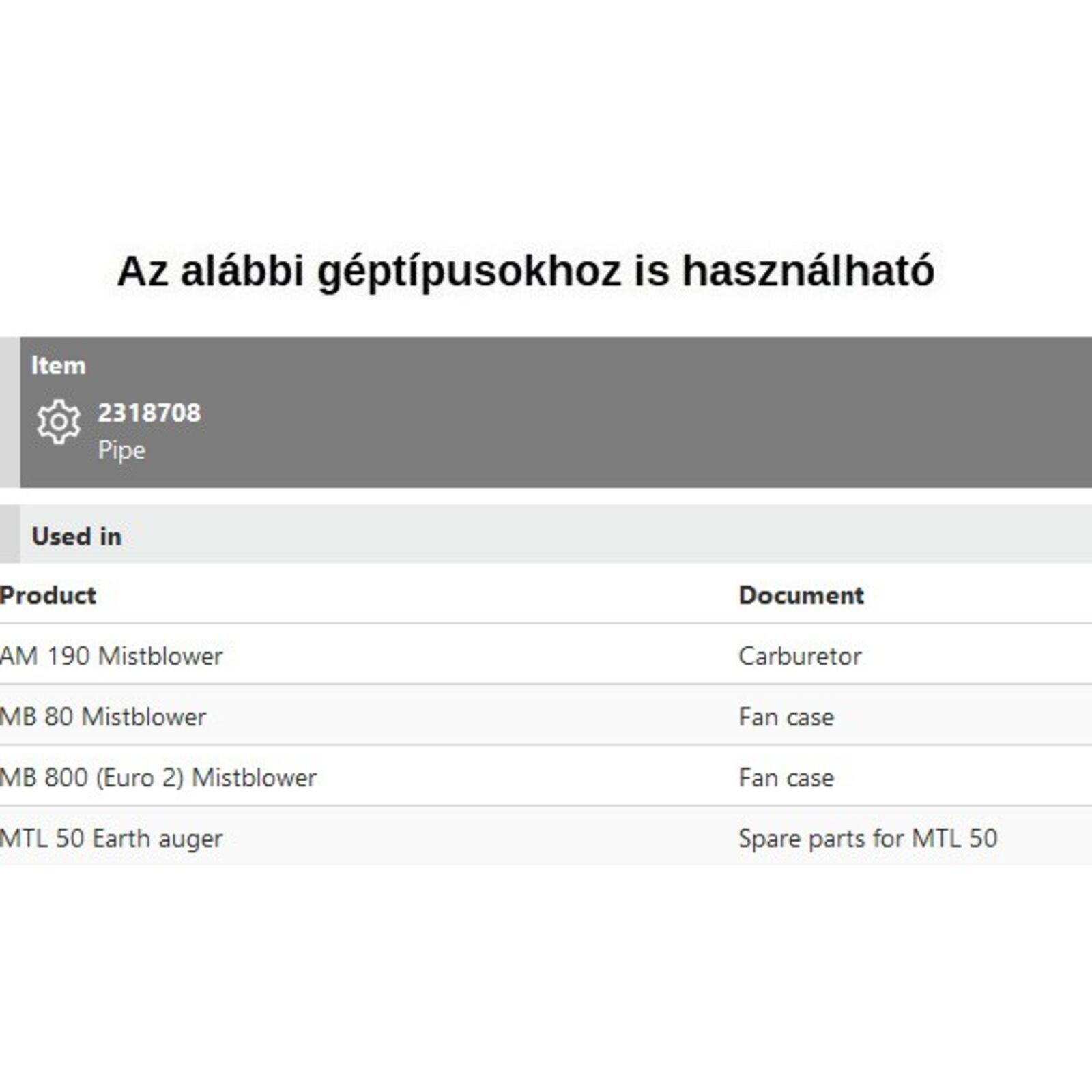 Pipa a karburátoron AM 190, MB 80, MB 800, MTL 50,