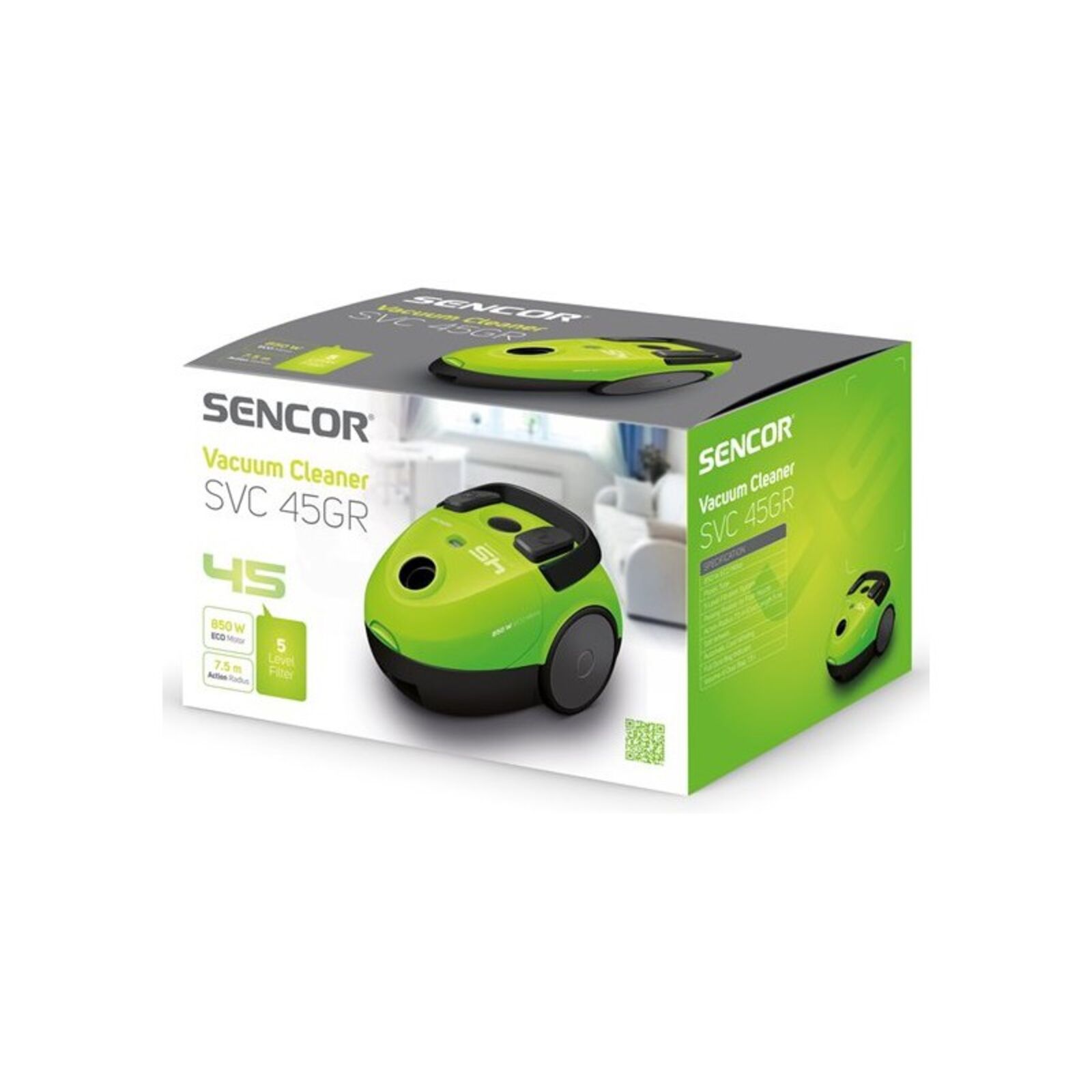 Porszívó SVC 45GR-EUE3 Sencor zöld 850W Eco motor porzsákos