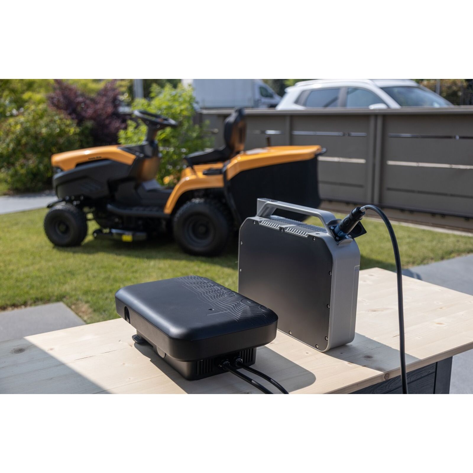 • 5 A-es akkumulátortöltő, mulcsozó dugó, pótkocsi-csatlakozó és telefontartó