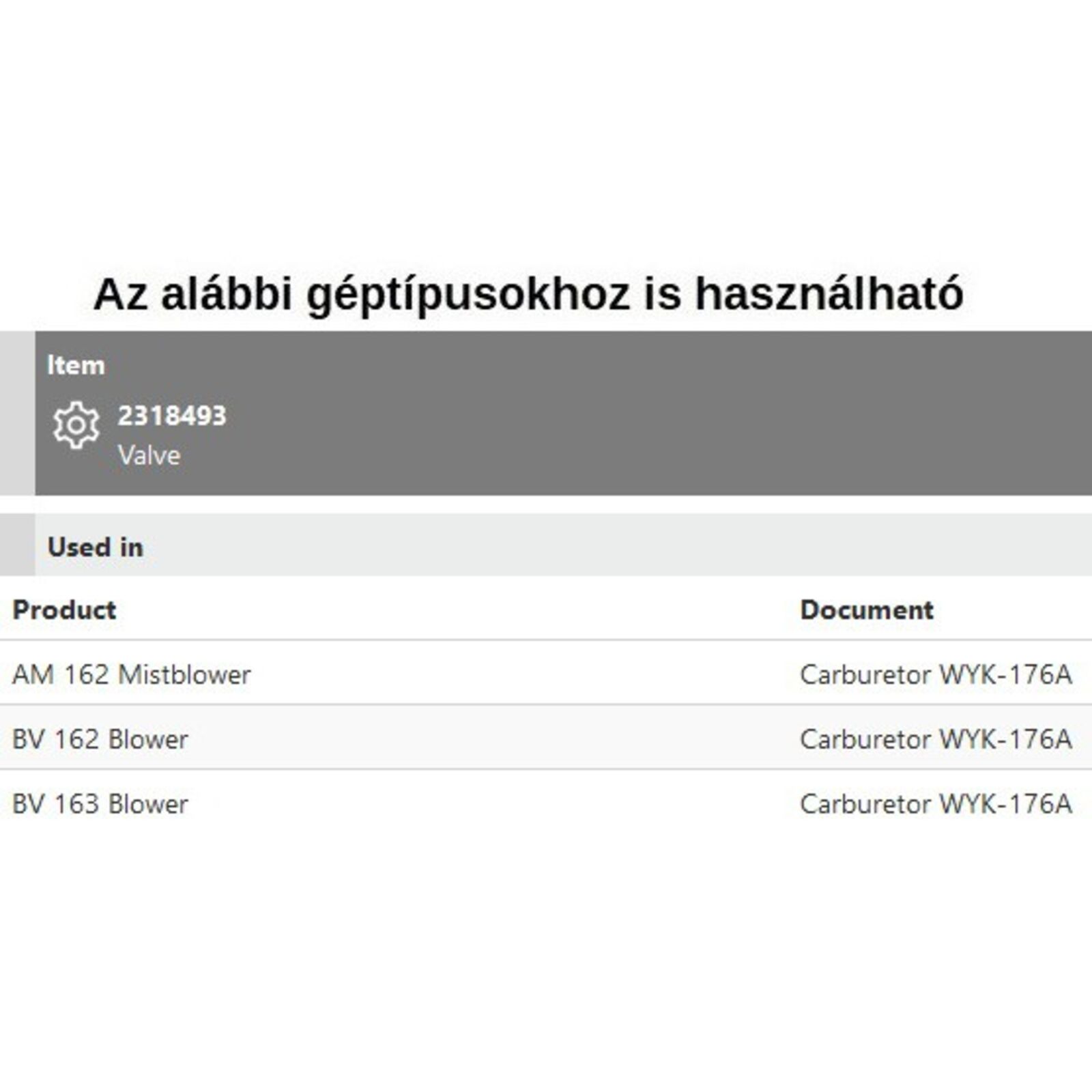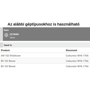 Szelep a karburátorban AM 162, BV 162-163,