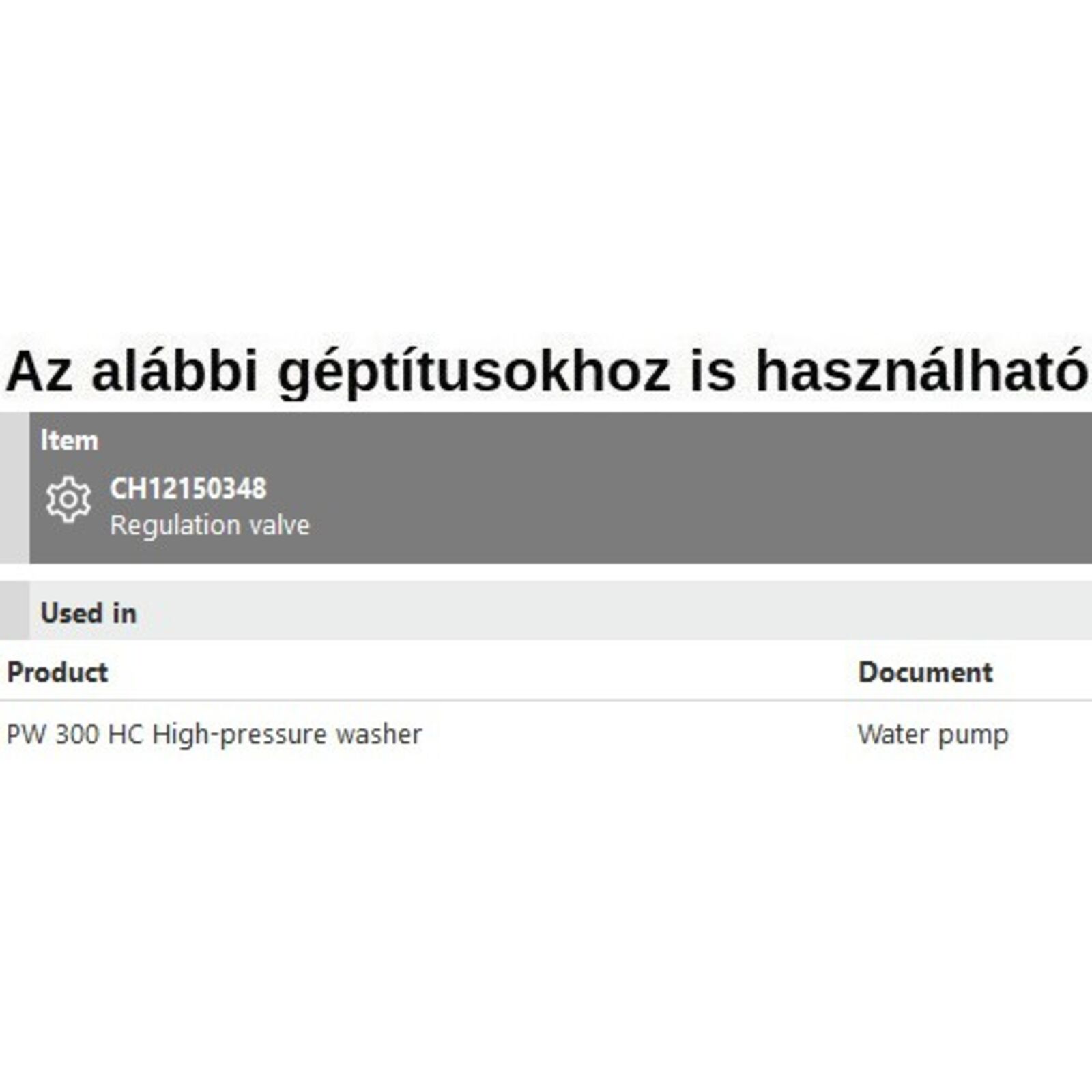 Szelep komplett PW 300 HC