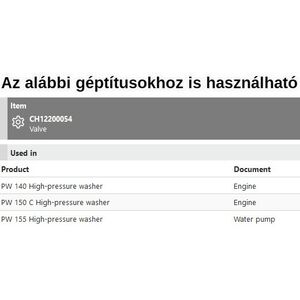 Szelep PW 140, PW150C, PW155