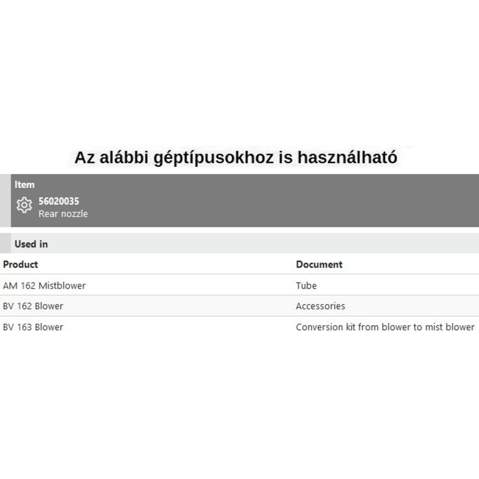 Szórófejbe perditő AM 162, BV 162, BV 163,