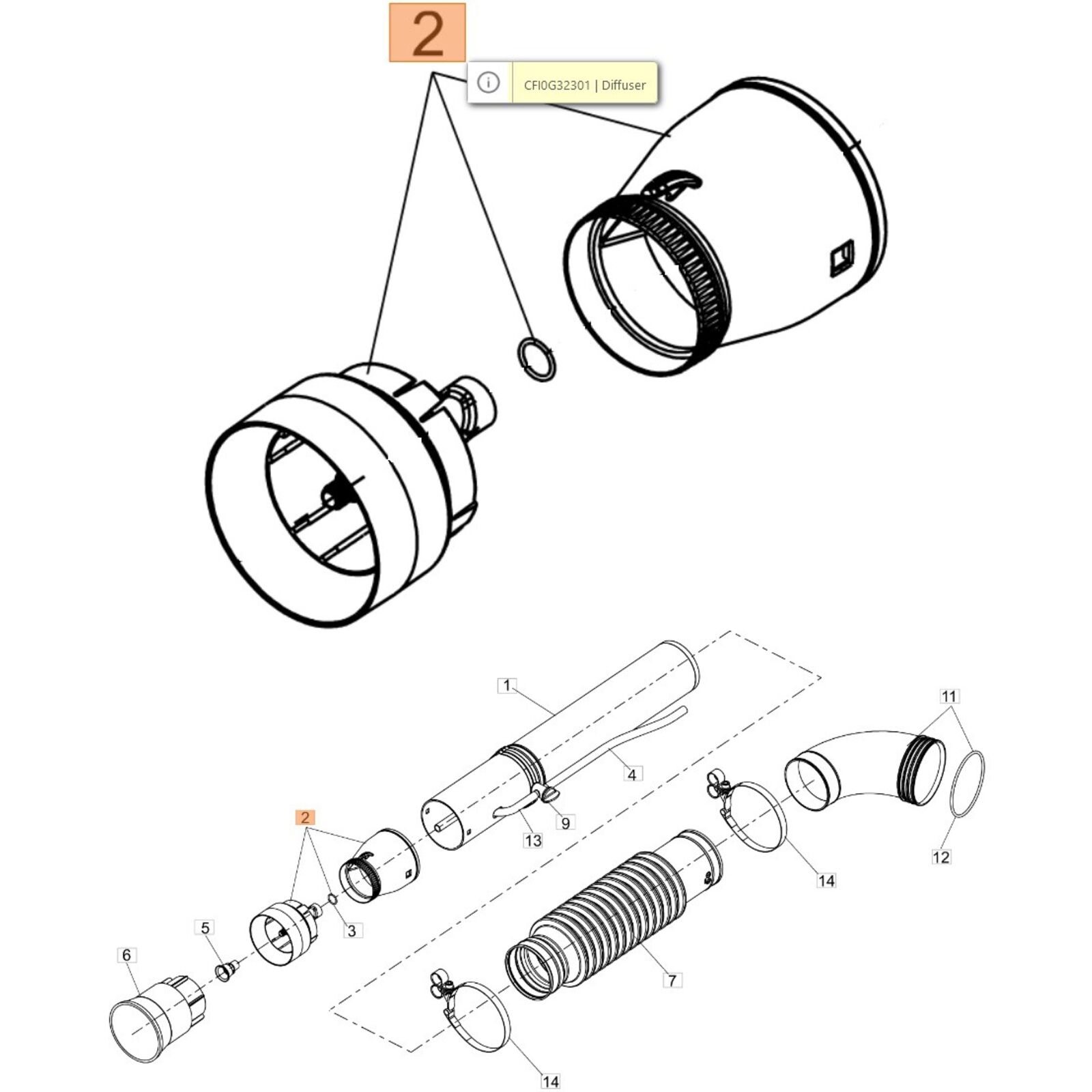 Szűkítő / diffusor szett + O-gyűrű - 2db-os MB 90, MB 900