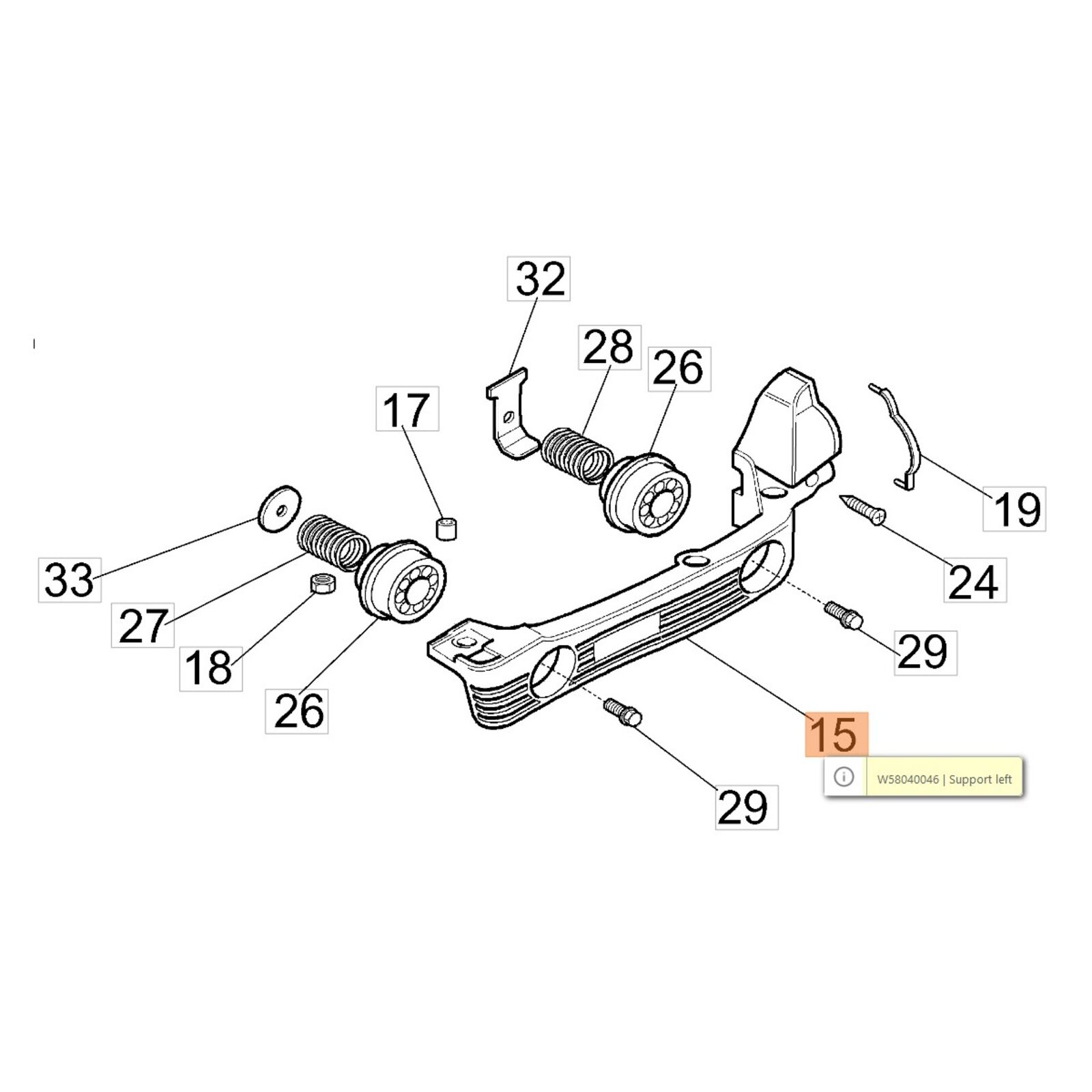 Tartó gumibakhoz bal HC 246-247P, HC 260-265-275-280 XP