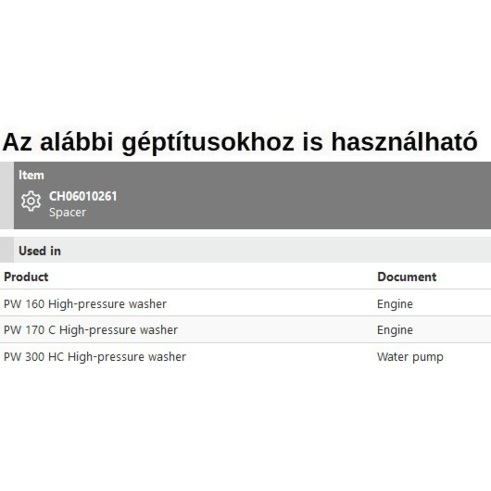 Távtartó PW 160,PW 170C, PW 300HC