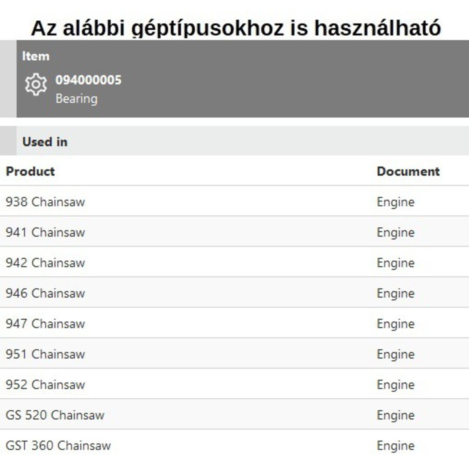 Típusok: 938, 934, 942, 946, 947, 951, 952, GS 520, GST 360