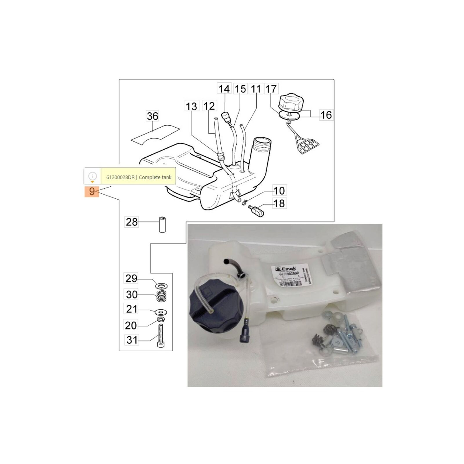 Üzemanyag tank komplett Sparta 37, 38, 370, 380, 42, 44 - 61212016 is