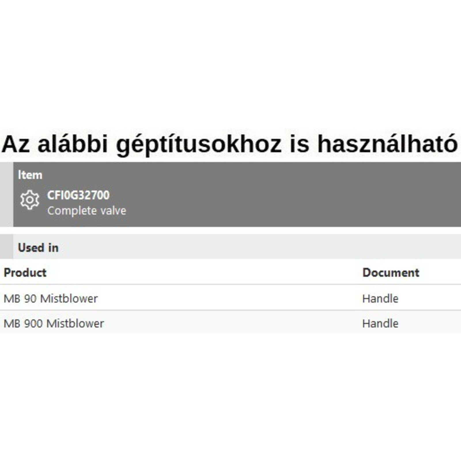 Vegyszercsap MB 90, MB 900