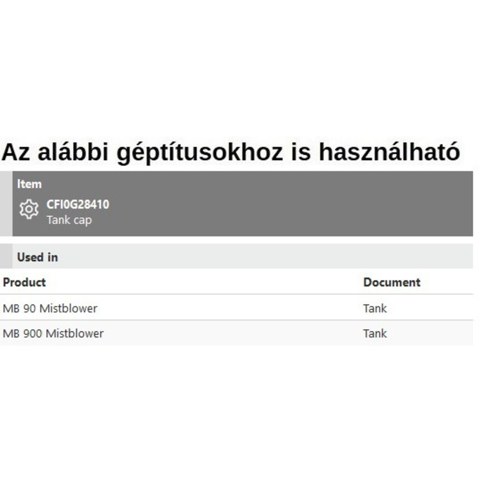 Vegyszertartály fedél sapka MB 90, MB 900