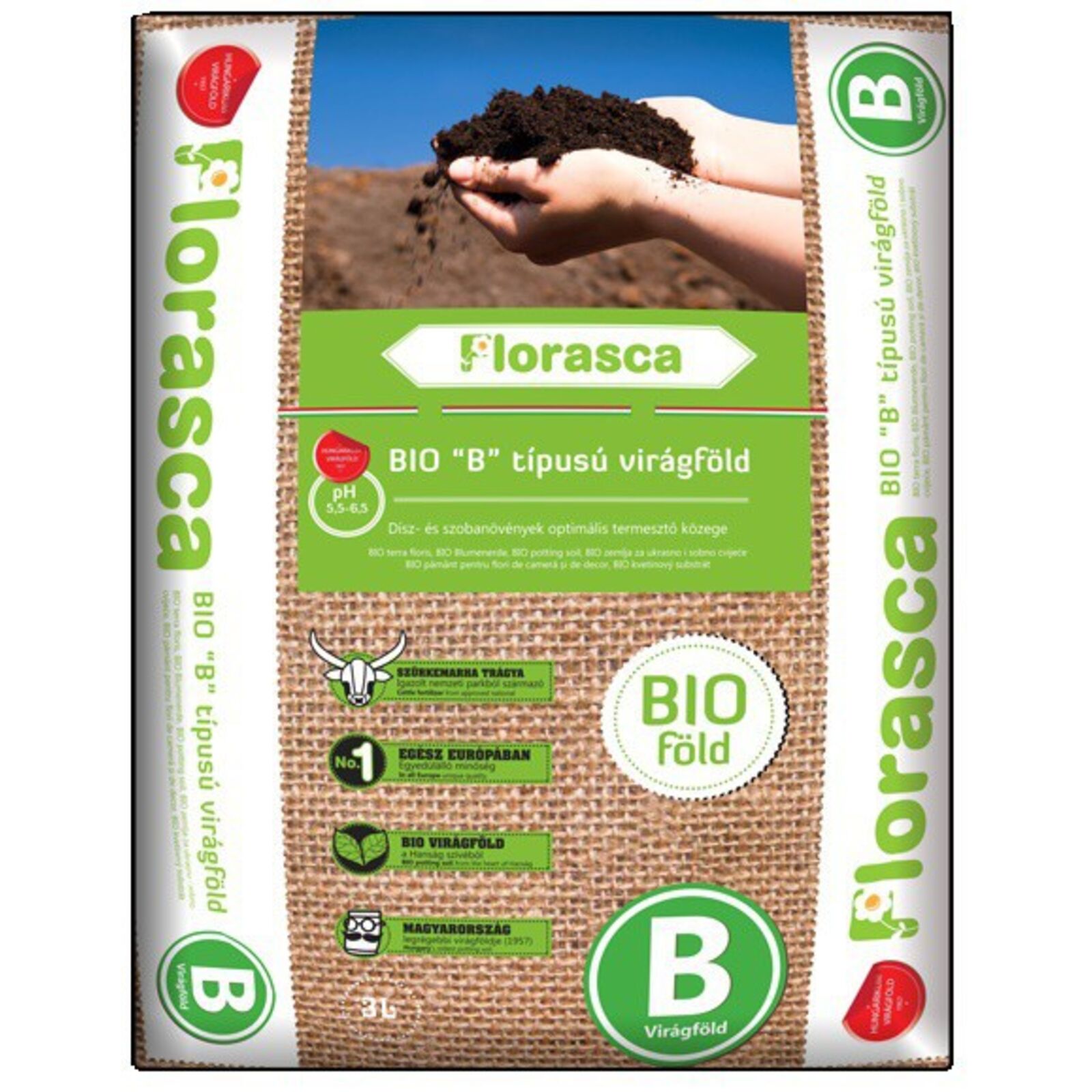 Florasca 'B' semleges (5,5-6,5 pH) virágföld összetétel: tőzeg, szürkemarha komposzt, adalékanyagok saját receptúra alapján Felhasználható a következő növényekhez: Aphelandra squarossa - Ráncos afelandra, sárkányfüzérFlorasca B-virágföld Asparagus fajok - Díszspárga Cholorophytum - Csokrosinda Cissus - Futóka Citrus fajok - Citrom, narancs, stb. Cineraia Codiaeum variegatum - Kroton Cypreus fajok és fajták - Vízipálma Diffenbachia .Diffenbachiák Dracena fajok - Dracéna