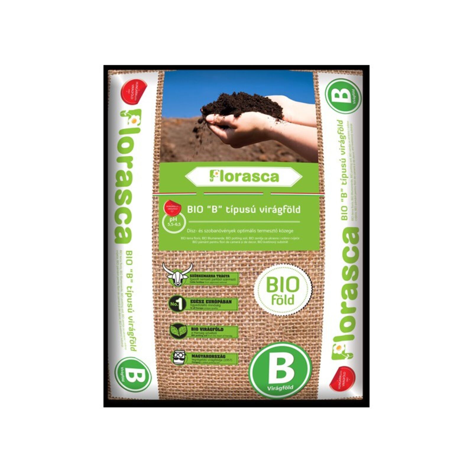 A kertészeti szakkönyvek elsőként elismert virágföld besorolása: Florasca BIO ’B’ semleges (5,5-6,5 pH) Tőzeg, szürkemarha komposzt, adalékanyagok saját receptúra alapján Felhasználható a következő növényekhez: Aphelandra squarossa - Ráncos afelandra, sárkányfüzérFlorasca B-virágföld Asparagus fajok - Díszspárga Cholorophytum - Csokrosinda Cissus - Futóka Citrus fajok - Citrom, narancs, stb. Cineraia Codiaeum variegatum - Kroton Cypreus fajok és fajták - Vízipálma Diffenbachia .Diffenbachiák Dracena fajok - Dracéna