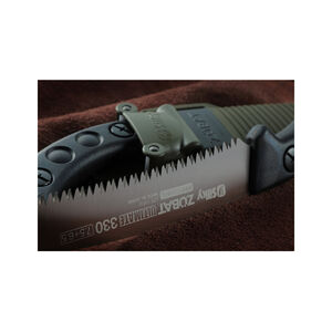 Progresszív fogkialakítása miatt ( 7,5-6,5 fog/30 mm) az első vágás rendkívül könnyen elvégezhető, ami után nagy sebességgel lehet áthasítani a fát. A Zübat Ultimate egyben az első fűrész a Silky új Gokai-Me fogaival. A pengének 4 kaparó alakú foga van, amelyek biztosítják a fűrészpor optimális elvezetését. A Zübat Ultimate kiváló teljesítményt nyújt mind hasításnál, mind keresztvágásoknál, mind a ferde vágásoknál. Igazi sokoldalú szerszám! A penge végig fut a markolaton, nikkel bevonattal rendelkezik, amely kopásálló felületet biztosít és véd a rozsdától. Az ívelt penge tökéletesen működik vállmagasság feletti vágáskor és a fűrészt a vágásban tartja. A Zübat Ultimate öntött gumi fogantyúval rendelkezik, amely kényelmesen illeszkedik a kézbe és jelentősen csökkenti a vibrációt. A fűrészt forgatható, olívazöld tokban szállítjuk, levehető övtartóval és 3 kis görgővel van felszerelve, hogy az éles fogak ne sértsék meg a burkolatot a fűrész be- és kivételekor. A tok alján egy nyílás található, amely lehetővé teszi a nedvesség és a fűrészpor kihullását. A Zübat Ultimate penge a Zübat ágvágó sorozat modelljeire is felszerelhető. Penge hossza: 330 mm Fogak: 7.5-6.5 / 30 mm